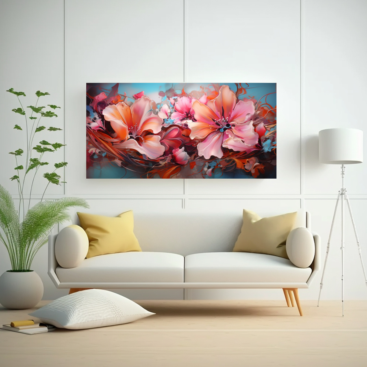 Coloca este cuadro de flores modernas abstractas en el salón de tu hogar para crear un ambiente elegante y sofisticado Combínalo con muebles en tonos neutros como el blanco, gris o beige, y añade algunos cojines en colores vibrantes que complementen los tonos del cuadro