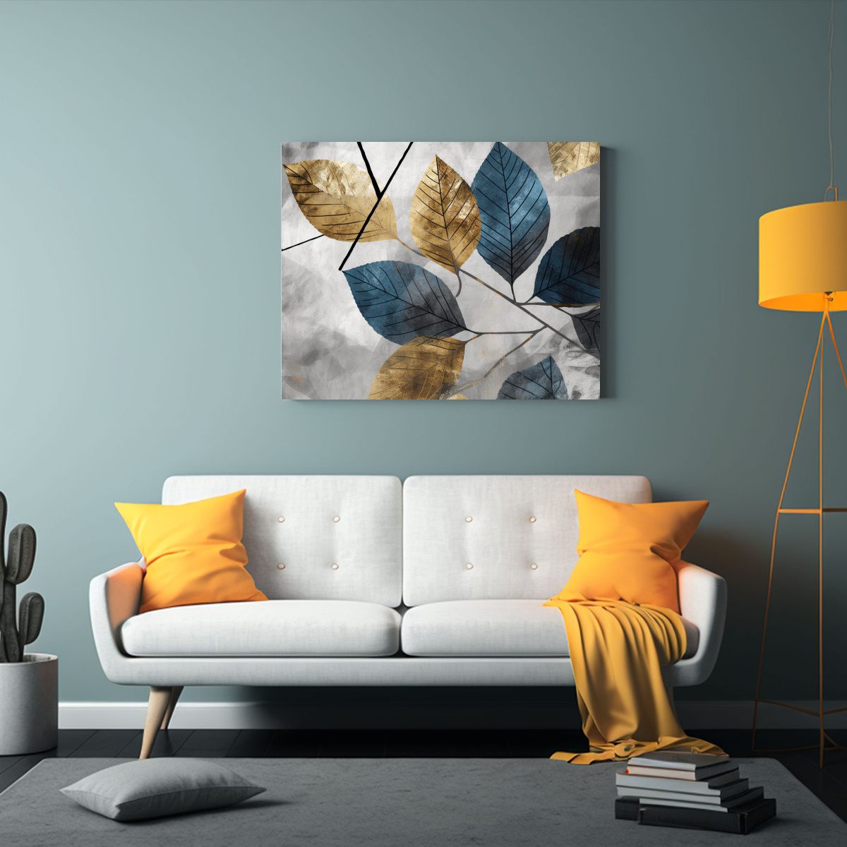 Cuadros De Hojas Retro Gris Azul Y Negro Para Decoración Nostálgica.
