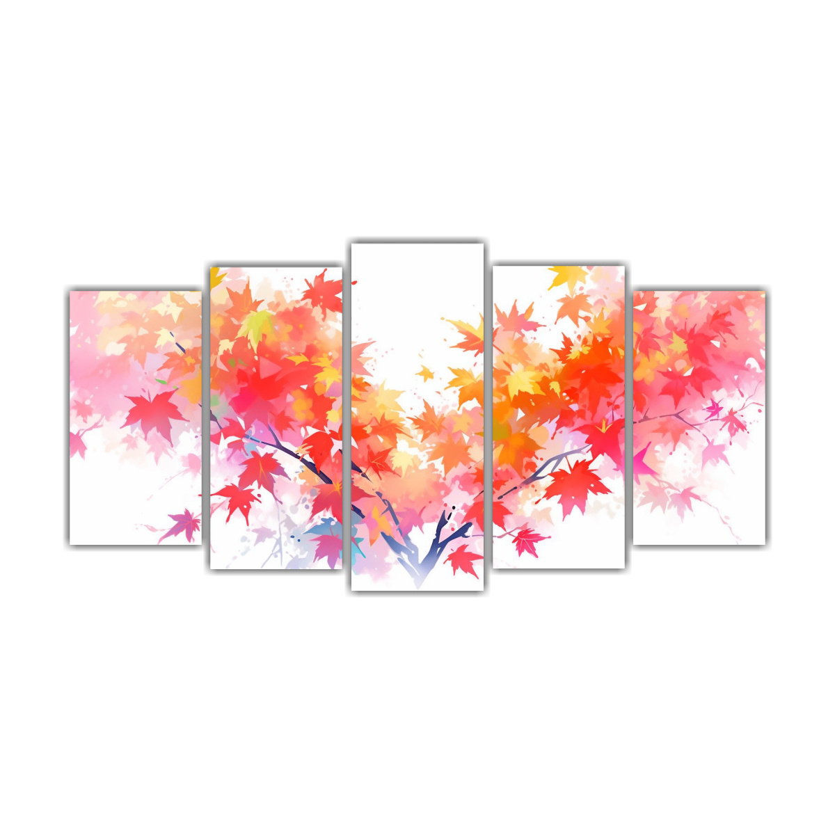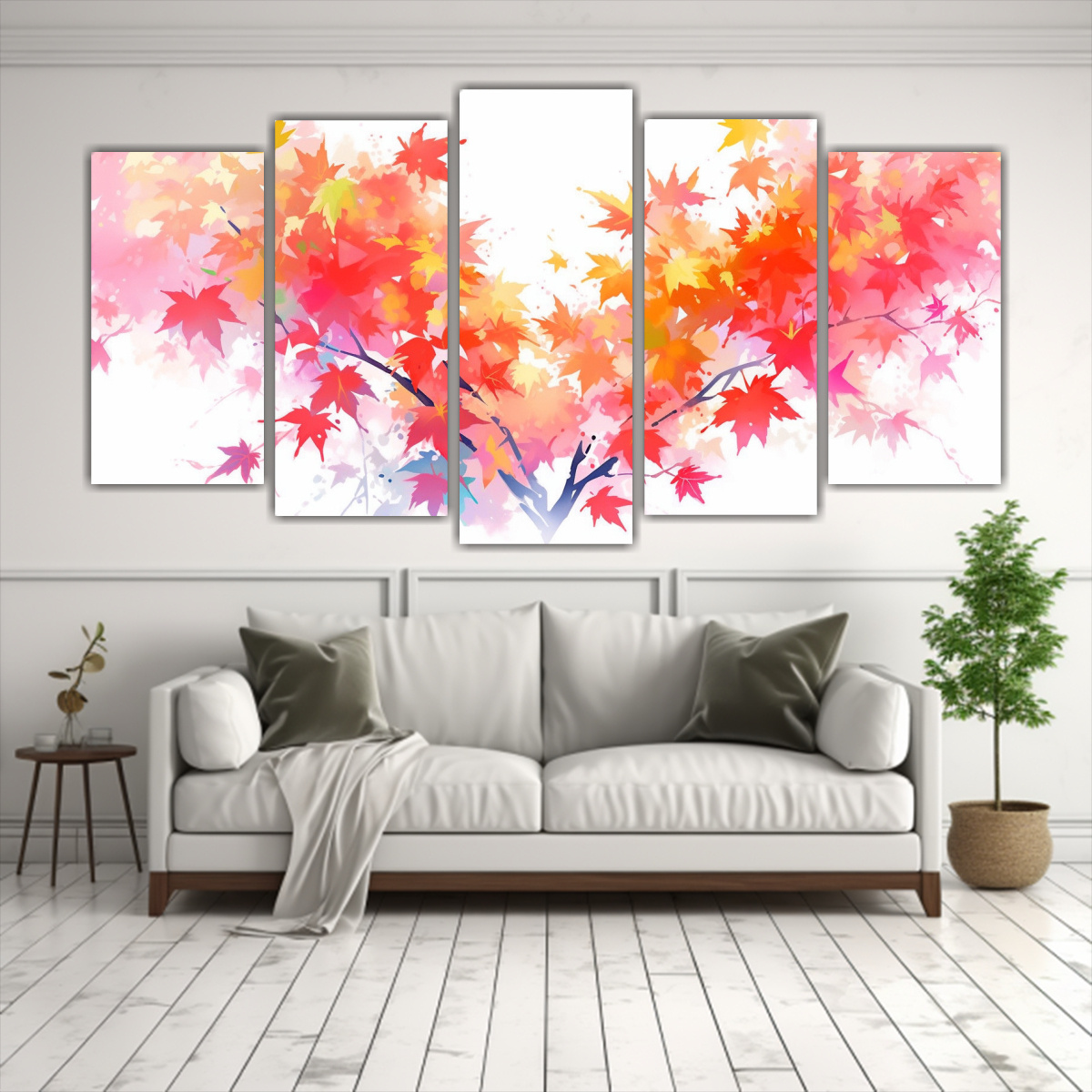 Cuadros De Lienzo Estilo Galería Con Estética Cinco Árboles De Maple En Colores Vibrantes, Atmósfera Neonoir