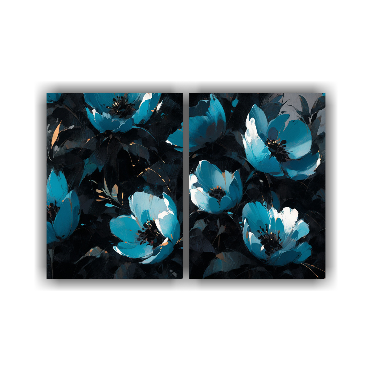 Cuadros De Lienzo Modernos: Flores En Turquesa Y Negro
