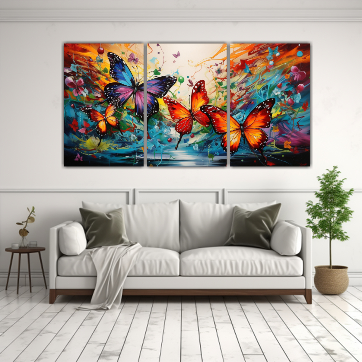 Coloca este bello cuadro de mariposas abstractas en tela Alegría pura en tu sala de estar para darle un toque de color y alegría Combínalo con cojines de tonos turquesa o menta y crea un ambiente fresco y vibrante en tu hogar