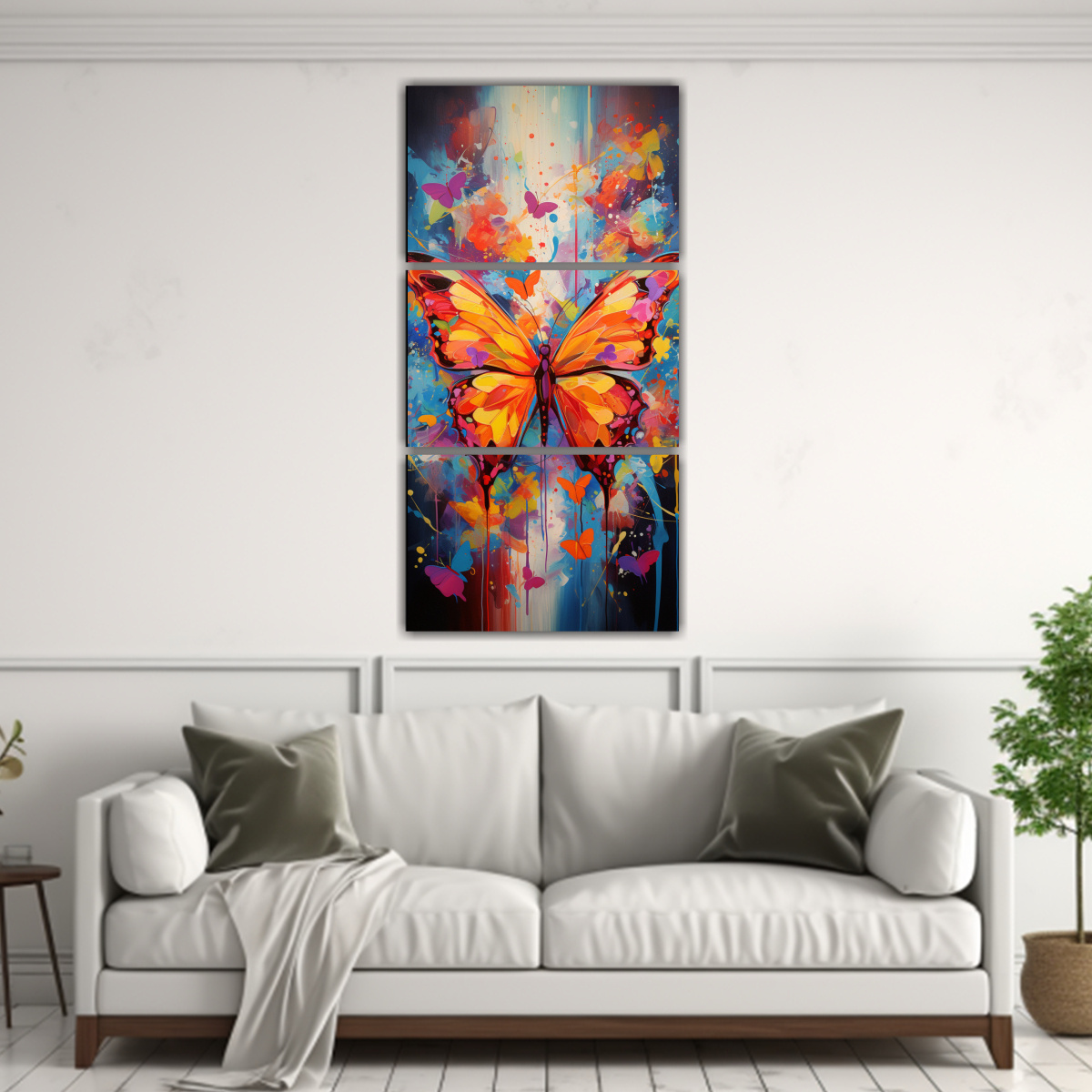 Para realzar la belleza de tu sala, te recomendamos colocar estos cuadros de mariposas abstractas en una pared blanca, creando un contraste elegante y moderno Combínalos con muebles en tonos neutros para un ambiente sofisticado