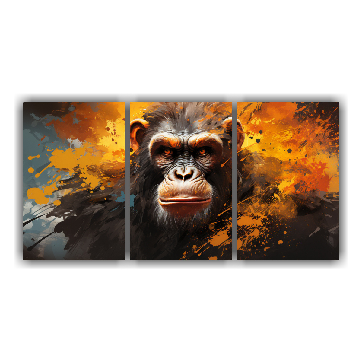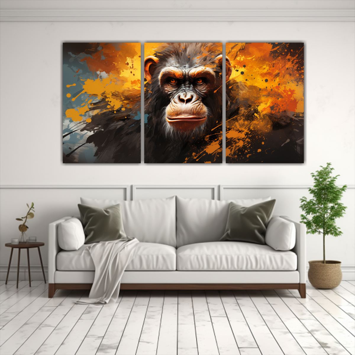 Coloca estos Cuadros de Monos en Colores Bronce en una sala de estar moderna para crear un impacto visual Combínalos con muebles en tonos neutros para resaltar los colores vibrantes de las obras ¡Transforma tu espacio con esta pieza de arte exclusiva!