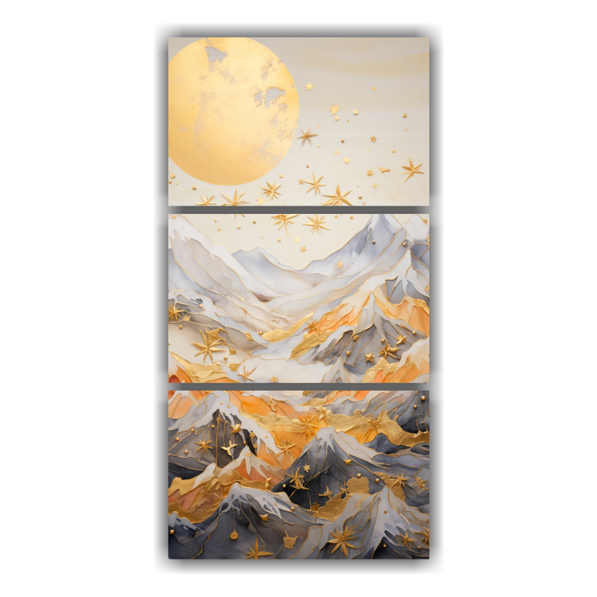 Cuadros De Paisaje De Montaña Con Estilo Elegante Y Patrón Intenso.