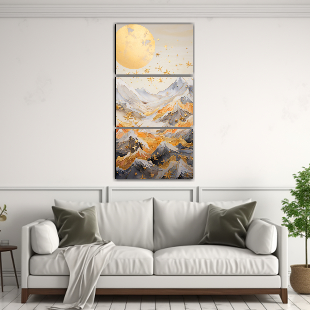 Este cuadro de paisaje de montaña con estilo elegante y patrón intenso sería perfecto para decorar tu sala de estar Colócalo sobre un sofá gris o azul marino para resaltar los tonos de la imagen Combínalo con cojines en tonos plateados, dorados y grises para crear una armonía visual Completa el ambiente con cortinas en tonos coral para darle un toque de color ¡Crea un espacio único y sofisticado con este cuadro de paisaje de montaña!