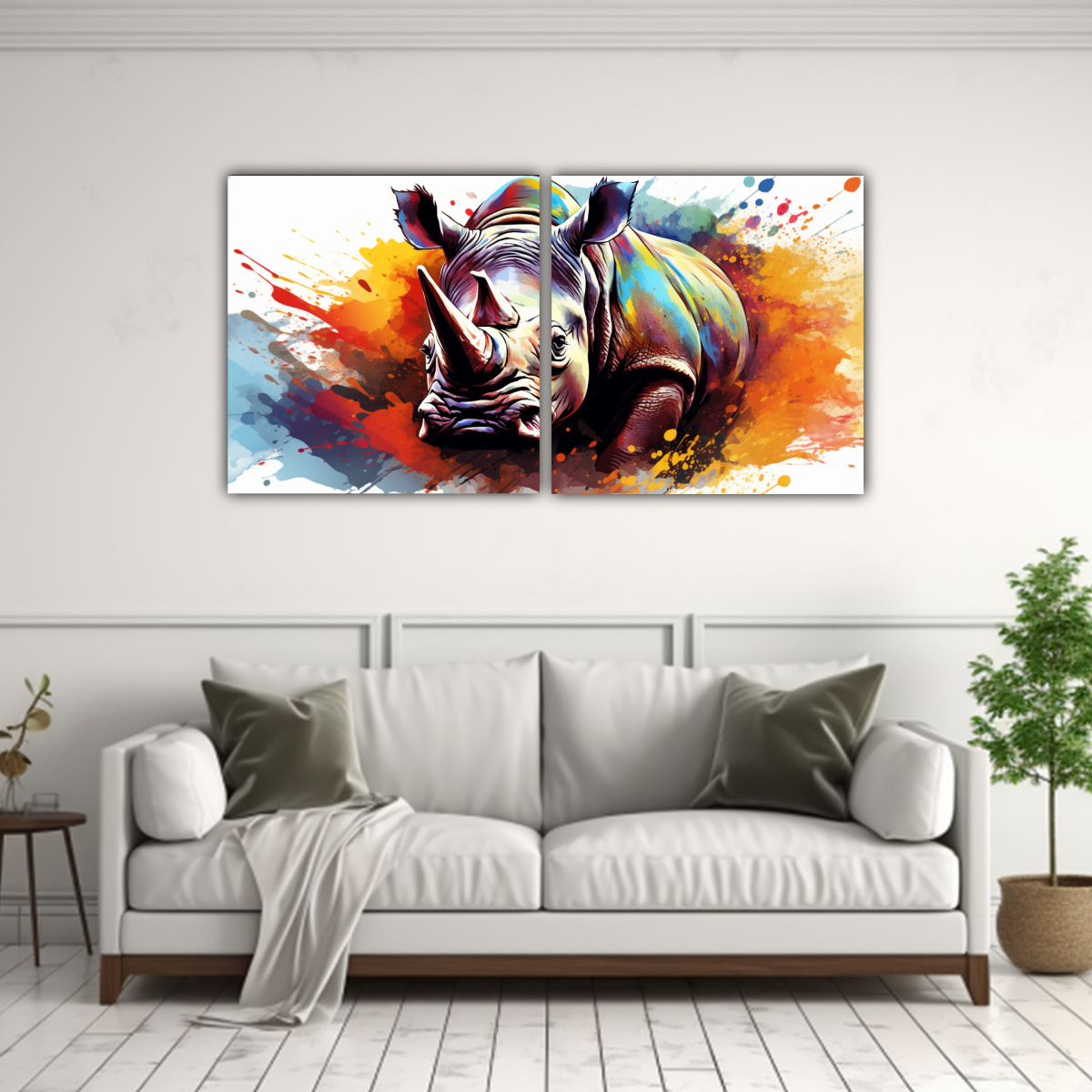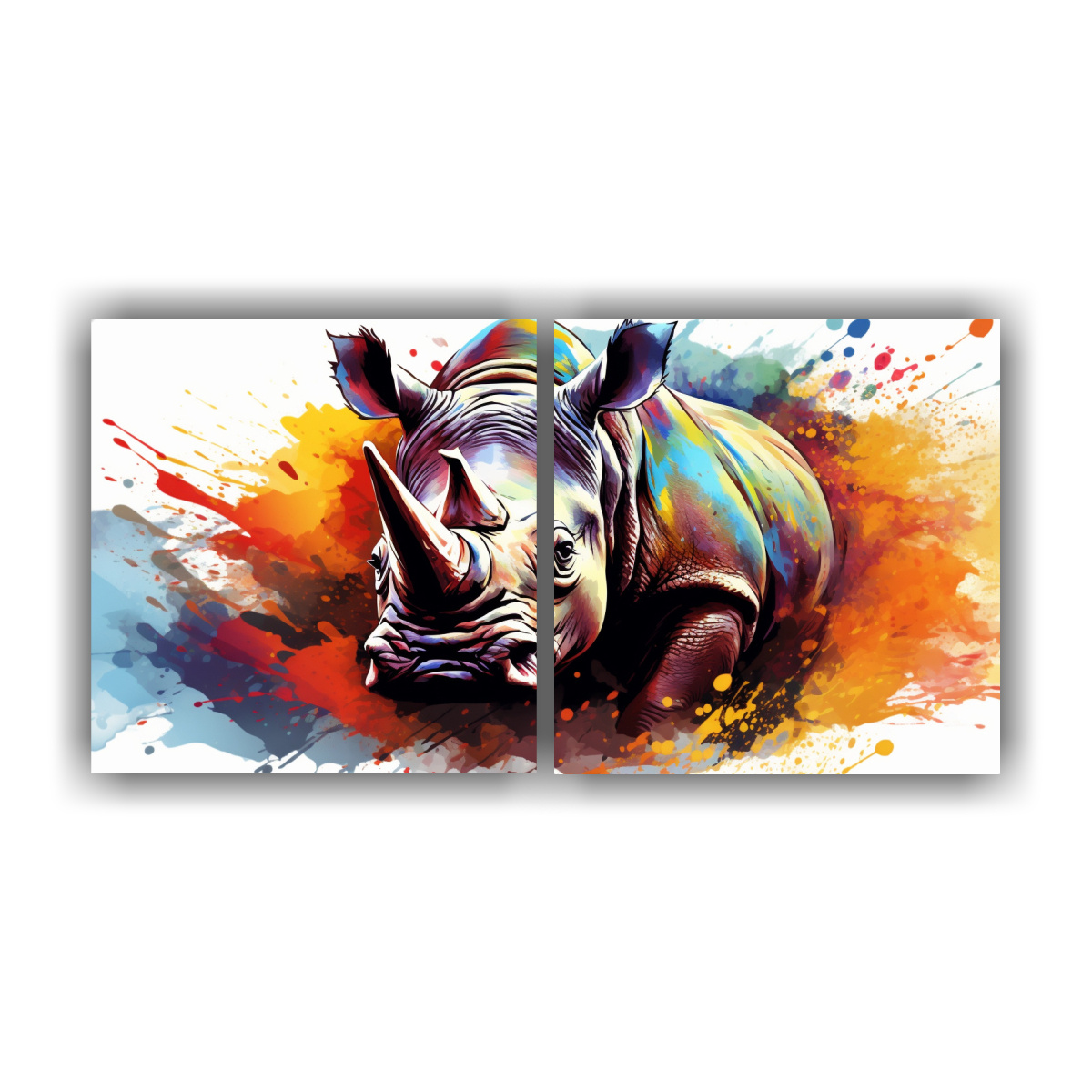 El Set de 2 Artes de Pared Abstracción Simetría con un Rhinoceros in Rainbow y Brown Colors neo pop art añadirá un toque único a tu espacio Envíos rápidos y gratis en Santiago, ¡adquiere el tuyo ahora!