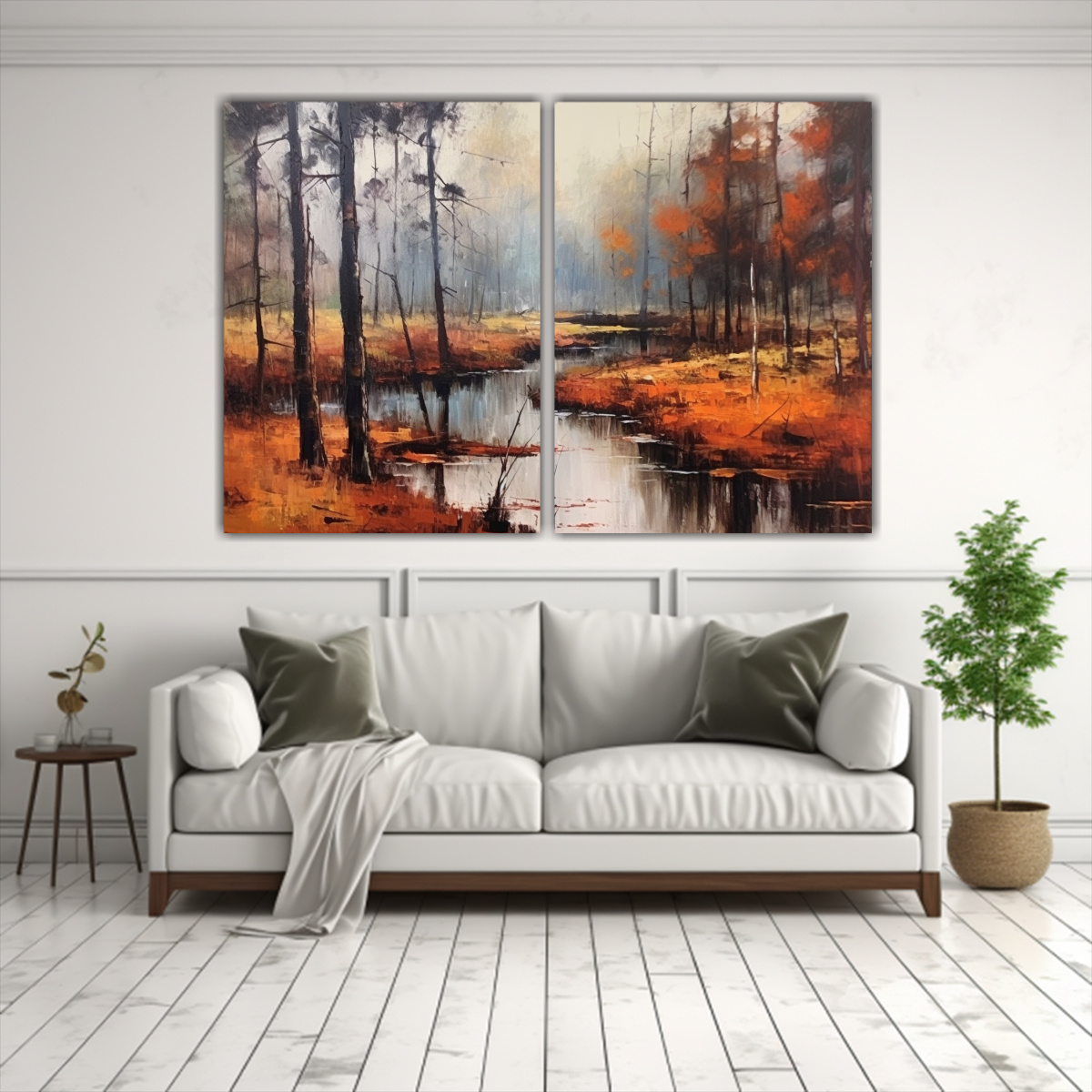 Cuadros De Pared Bosque Con Pequeño Lago, Colores Naturaleza Viva