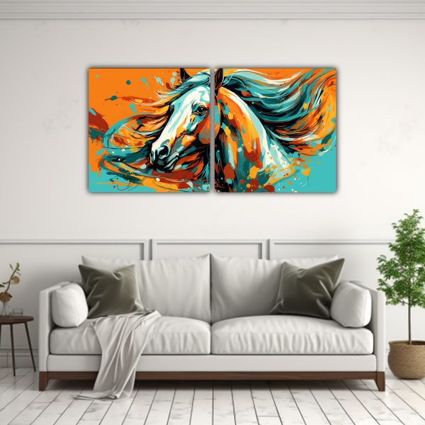 Cuadros De Pared Miniatura De Caballo En Turquesa Y Naranja Deco Neo Pop