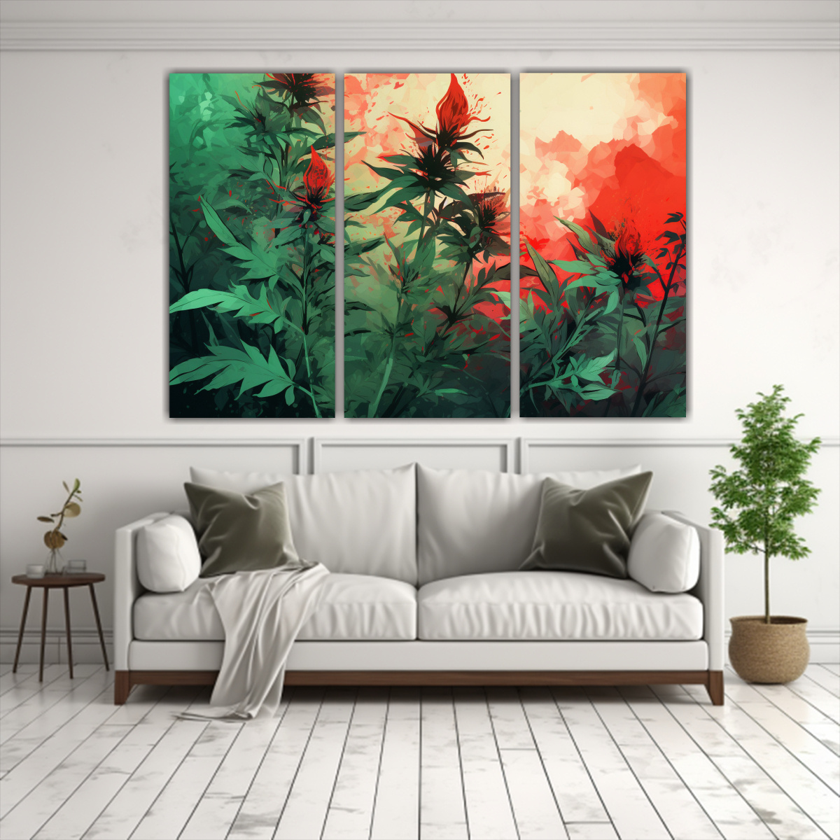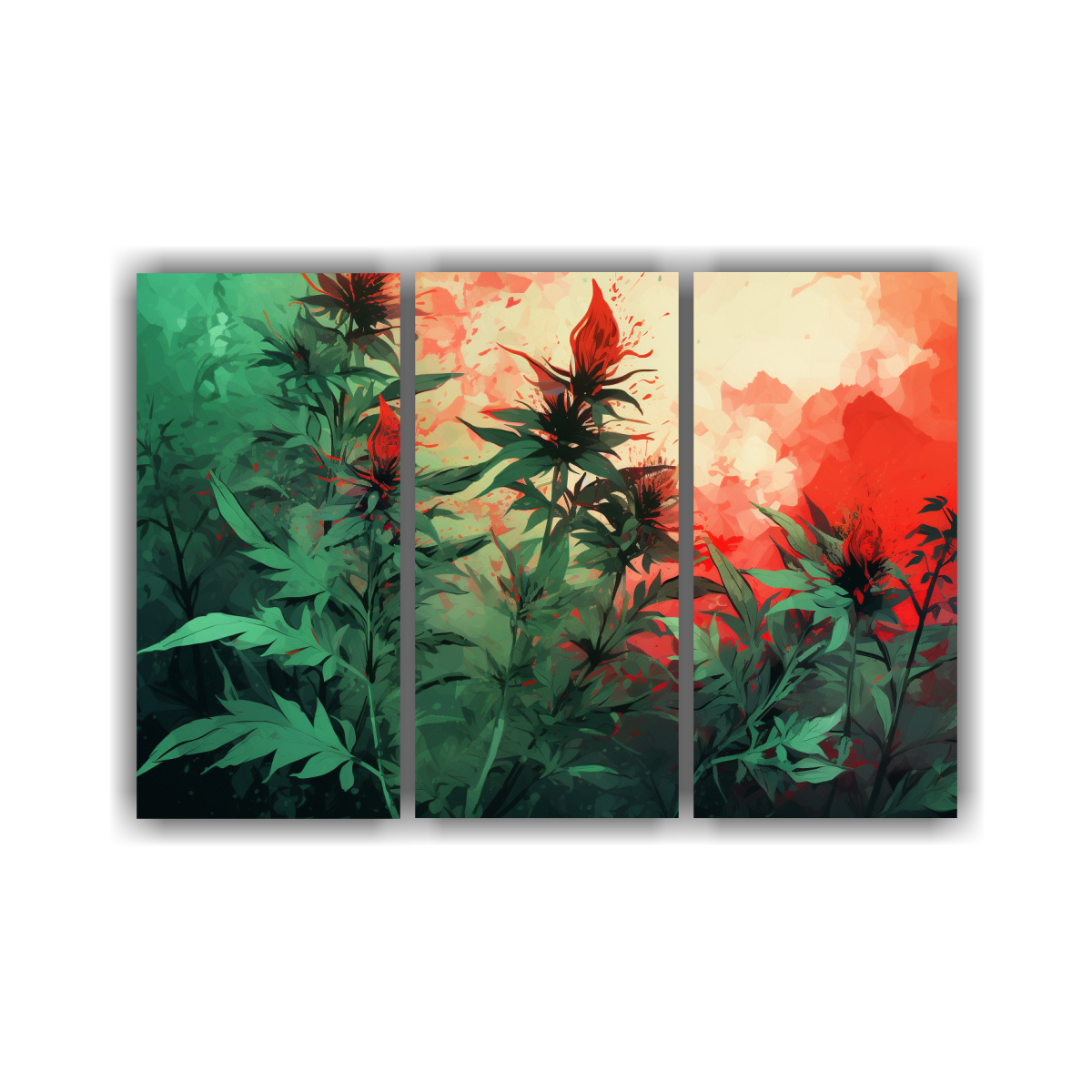Descubre nuestros cuadros de pared modernos con detalles de hierbas en verde y rojo, perfectos para dar un toque contemporáneo a tu hogar Confeccionados en tela de alta calidad y montados en bastidores de madera, nuestros diseños exclusivos destacarán en cualquier ambiente