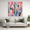 Este cuadro de cuadros de pared vintage modernos, acuarela geométrica, abstracto pastel en los colores lila, verde azulado, gris, carmesí, coral, plateado, azul marino grisáceo y turquesa sería perfecto para decorar tu sala de estar Colócalo sobre un sofá de color neutro para crear un contraste elegante y sofisticado ¡No esperes más y dale vida a tus paredes con este hermoso cuadro!