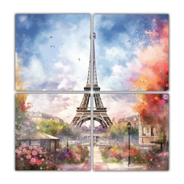 Cuadros De Tela Abstracción Luminosa Torre Eiffel De París Con Hermosas Acuarelas.