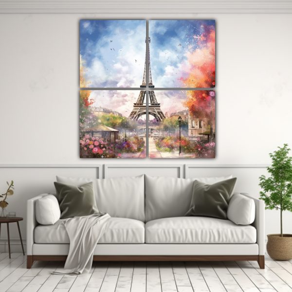 Este cuadro de tela abstracción luminosa Torre Eiffel de París con hermosas acuarelas se verá espectacular en tu sala de estar Colócalo sobre el sofá principal para crear un punto focal en la habitación Combina los colores beige, carmesí, azul marino grisáceo, gris, plateado, lila y turquesa con cojines y accesorios decorativos en tonos neutros para lograr un estilo moderno y sofisticado