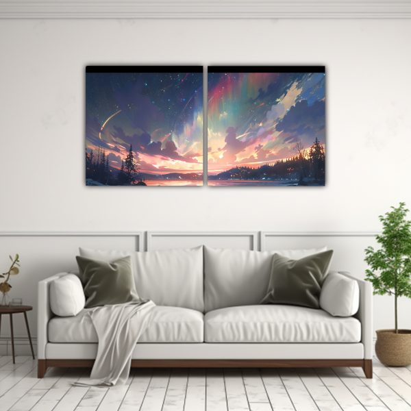 Para realzar la belleza de estos cuadros de tela abstractos inspirados en auroras boreales, te recomendamos colocarlos en una pared blanca para resaltar sus colores Combínalos con muebles de tonos neutros o metálicos para lograr un ambiente elegante y contemporáneo
