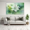 Cuadros De Tela Con Decoración Cálida En Tonos Verdes Y Flores Abstractas.