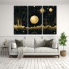 Coloca este cuadro de lunas doradas en el cielo en el centro de tu sala de estar para crear un punto focal impactante Combínalo con cojines en tonos dorados, negros y grises, y complementa con muebles de líneas sencillas en tonos neutros para un look equilibrado y elegante