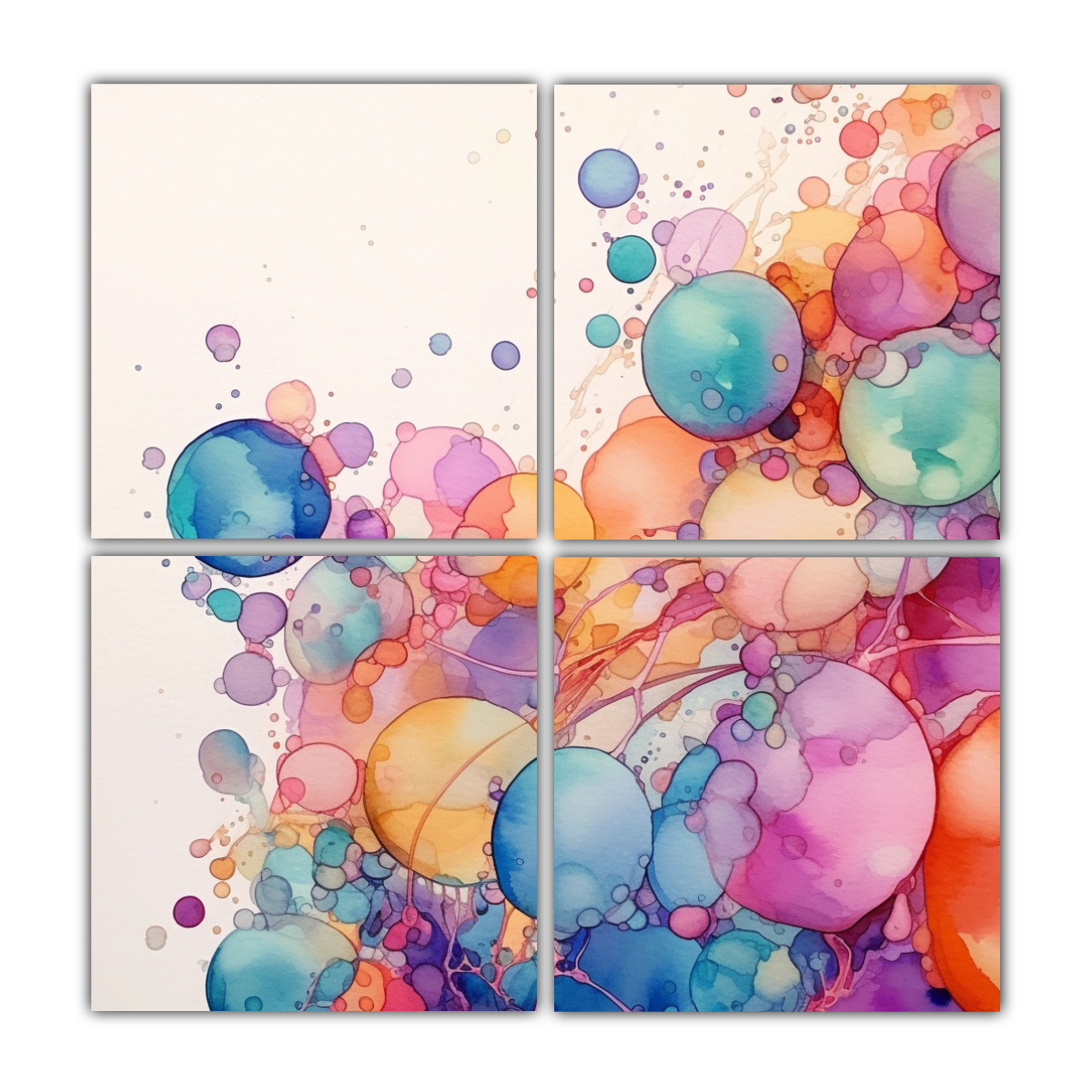 Cuadros De Tela Con Temática Luminosa De Burbujas Acuarela