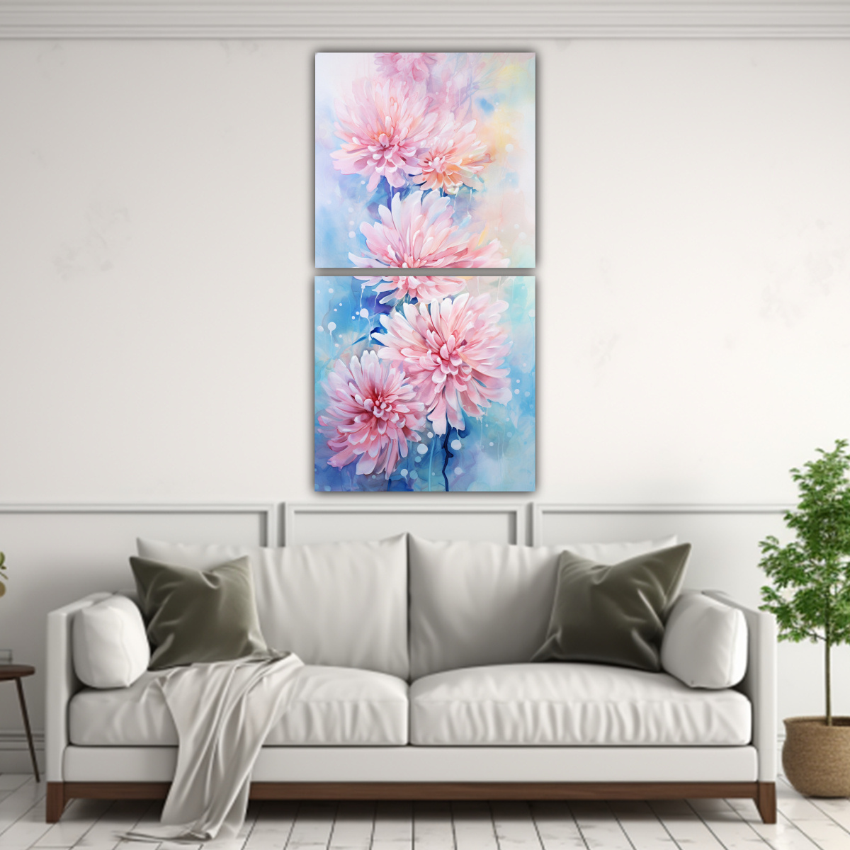 Decora tus espacios con los hermosos cuadros de tela Chrysanthemums Flores Rosa Y Azul Patrón Intenso de DecoCuadros Diseños exclusivos, alta calidad y precios económicos Envío rápido y gratis en Santiago