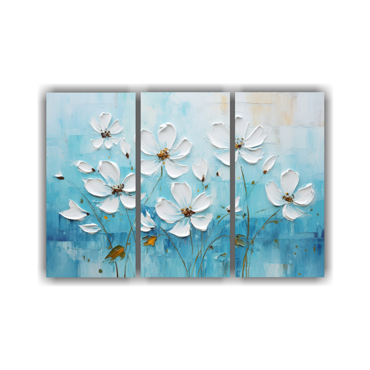 Renueva tu hogar con los tres lienzos de tela que transmiten alegría con su combinación de colores turquesa Diseños exclusivos y entrega rápida y gratuita en Santiago ¡Decora con estilo y originalidad!