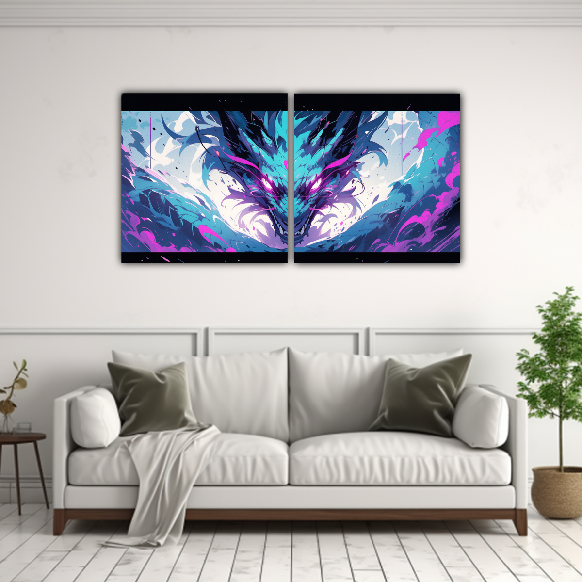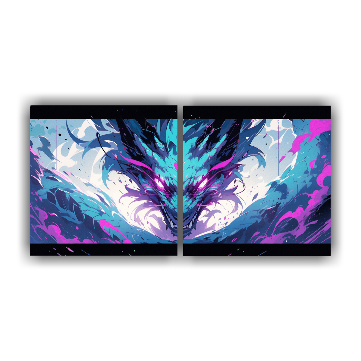 Cuadros De Tela Dragon En Colores Púrpura Y Turquesa, Neonoir