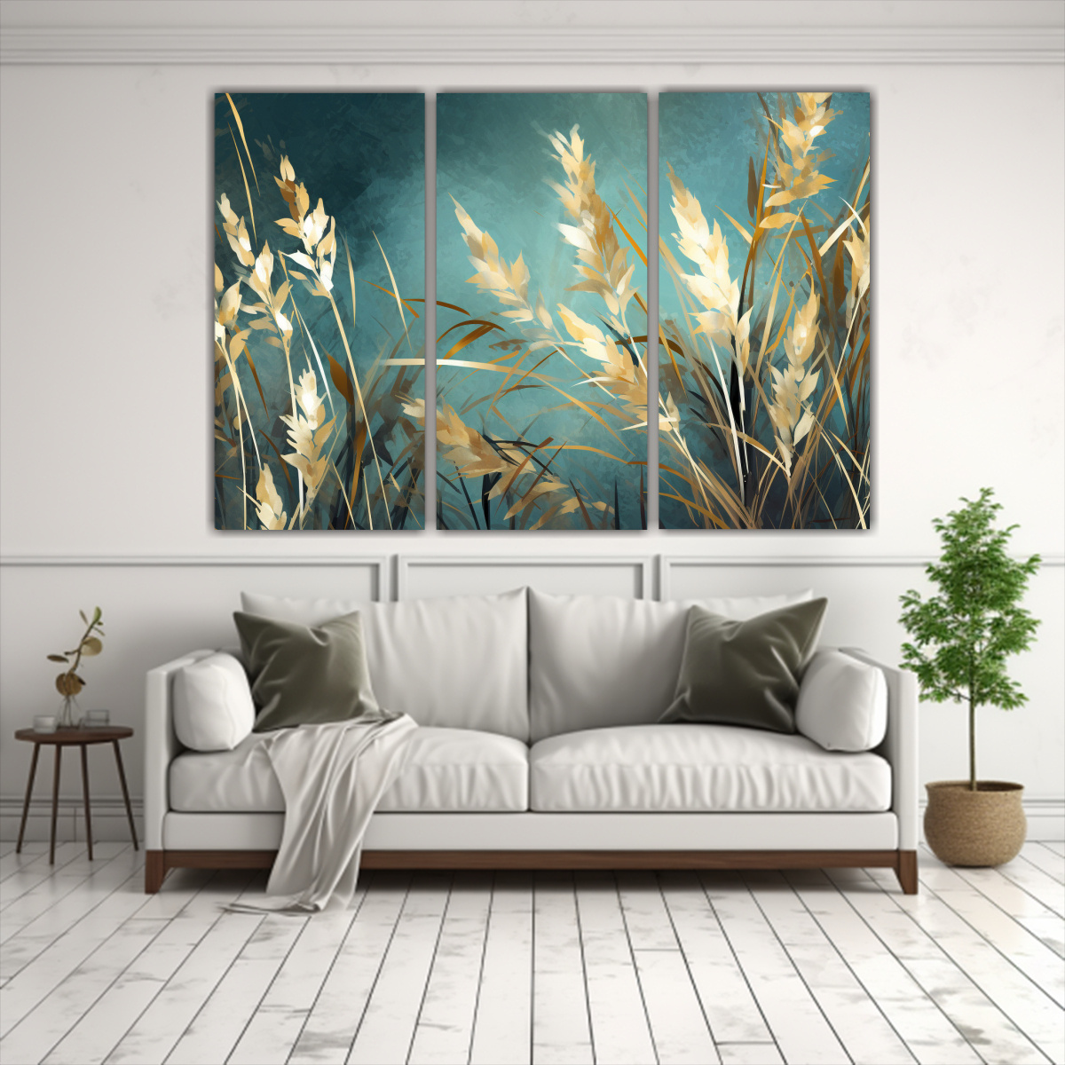 Cuadros De Tela Elegancia En Hierba Y Oro En Atmósfera Neonoir