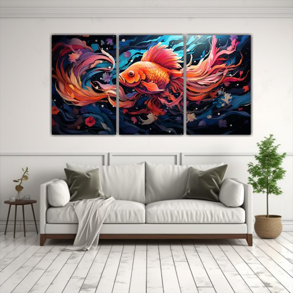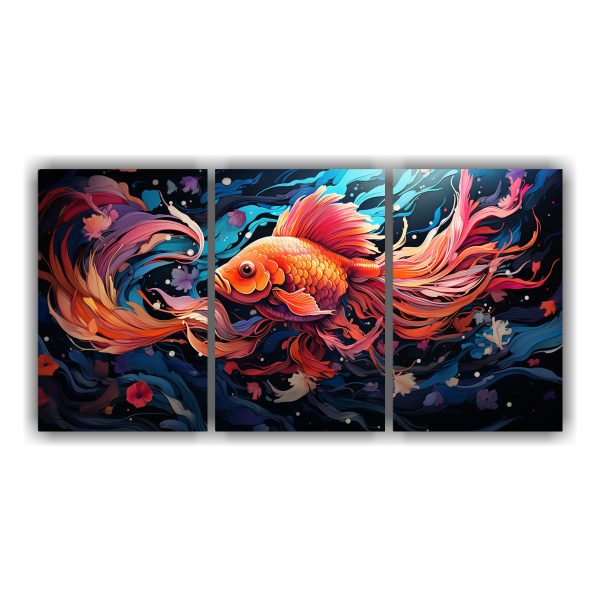 Cuadro de tela con peces dorados en colores vibrantes como coral, turquesa, negro y más Transforma tu ambiente con este diseño único Añade vida y alegría a tus paredes con la mejor calidad y precios competitivos del mercado