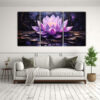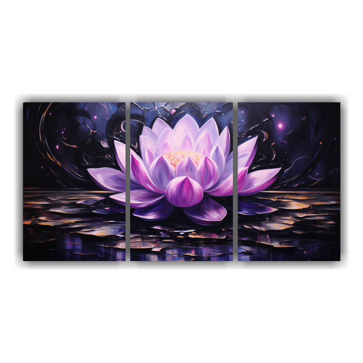 DecoCuadros te ofrece el cuadro Lotus negro brillante en lienzo, con una gama de colores lila, negro, gris, azul marino grisaceo y morado Con nuestros diseños exclusivos, la mejor calidad del mercado y precios económicos, podrás transformar tu espacio en un ambiente sofisticado y elegante
