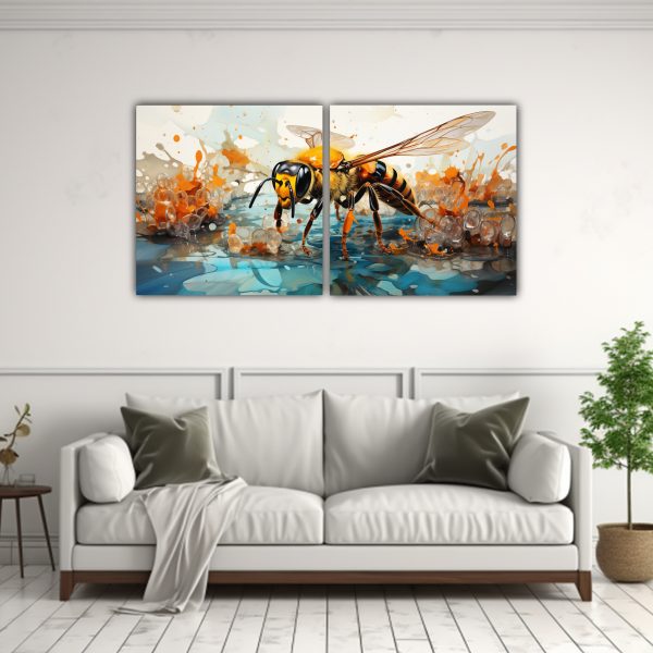 Cuadros Decorativos Abstractos Avispa En Colores Lima Y Azafrán Neo Pop.