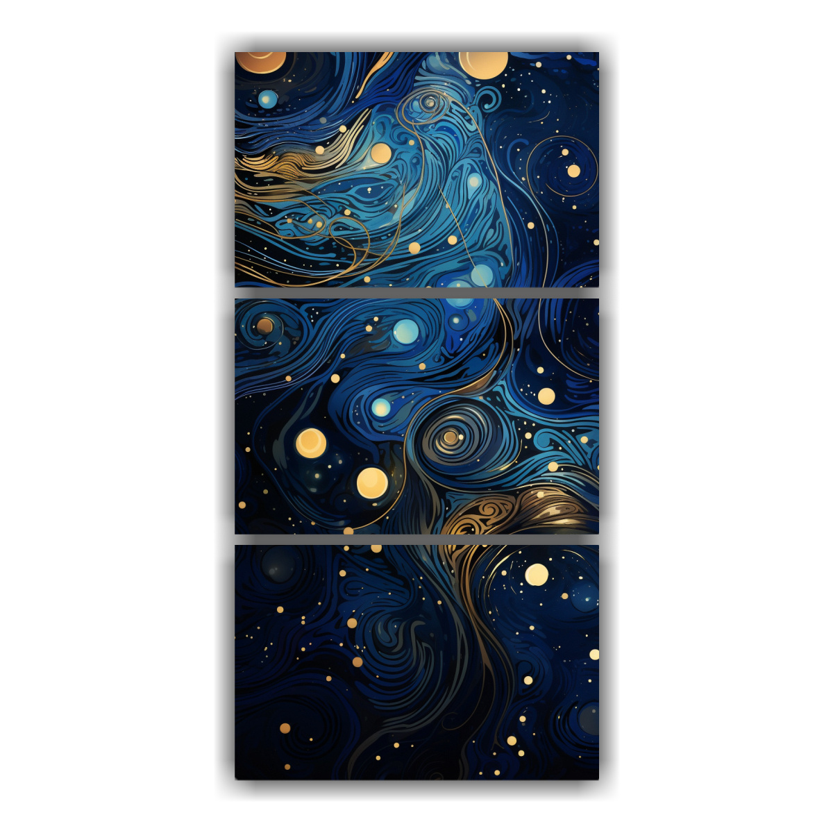 Llena tu espacio con la calidez y elegancia del Set 3 Telas en Bastidor Cosmic abstract patterns in deep blue de DecoCuadros Calidad premium, diseños exclusivos y envíos express a todo Chile ¡Renueva tu ambiente!
