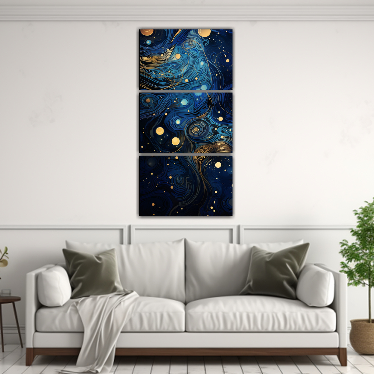 Cuadros Decorativos Abstractos En Azul Profundo Con Patrones Cósmicos.