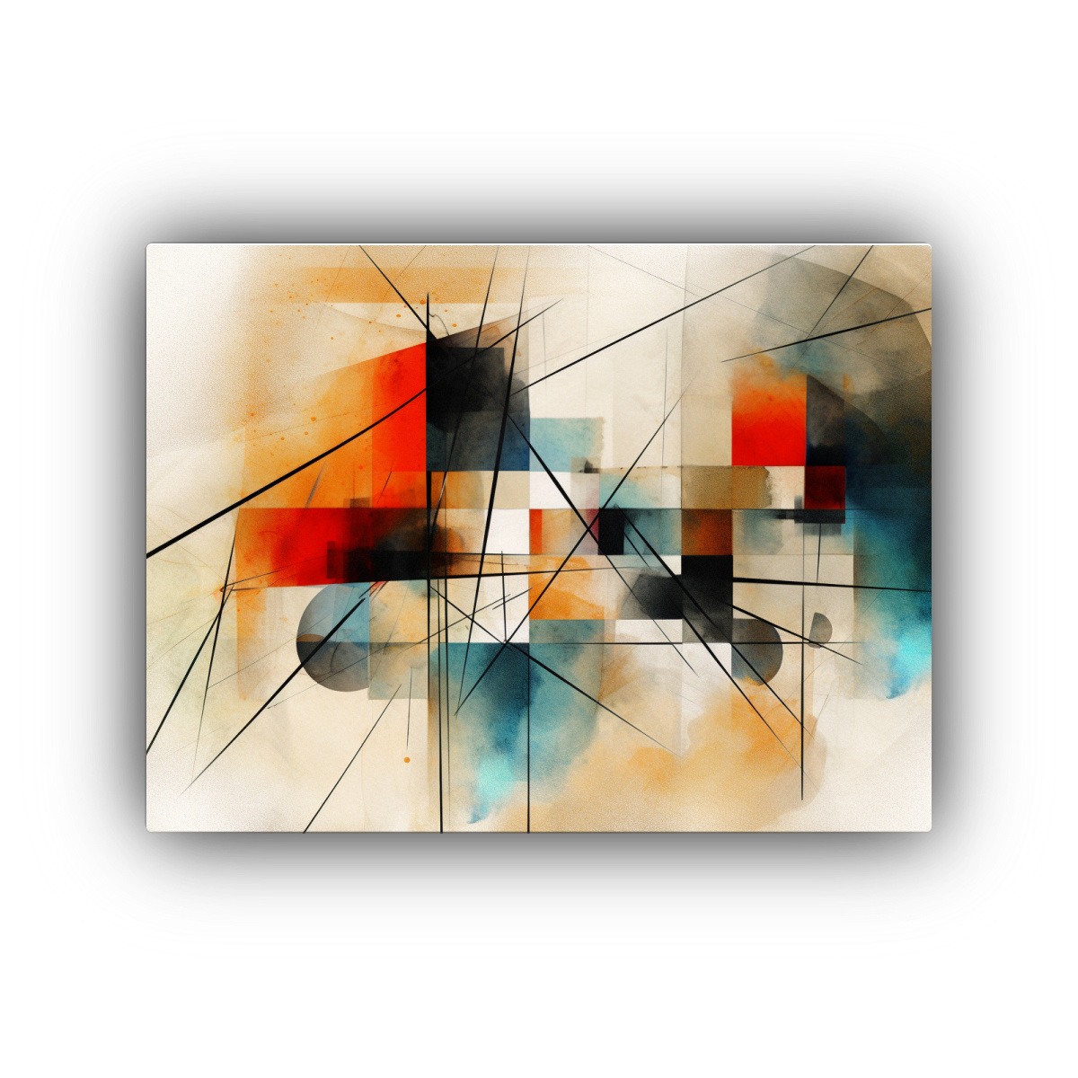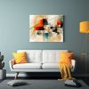 Este cuadro abstracto geométrico se vería perfecto en tu sala de estar sobre un sofá de tonos neutros para crear un contraste elegante y vibrante Combínalo con cojines en los tonos presentes en la obra para lograr una armonía visual única ¡Dale vida a tu espacio con esta pieza exclusiva!