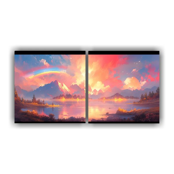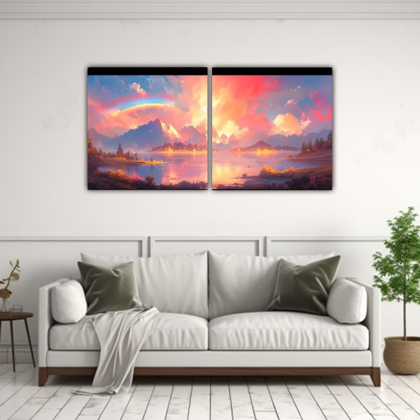 Renueva tu hogar con este cuadro decorativo abstracto paisaje arcoíris rosa Con finas líneas y una paleta de colores vibrantes, este cuadro brindará un toque único a tu ambiente Aprovecha nuestras entregas express a regiones y adquiere arte de calidad al mejor precio