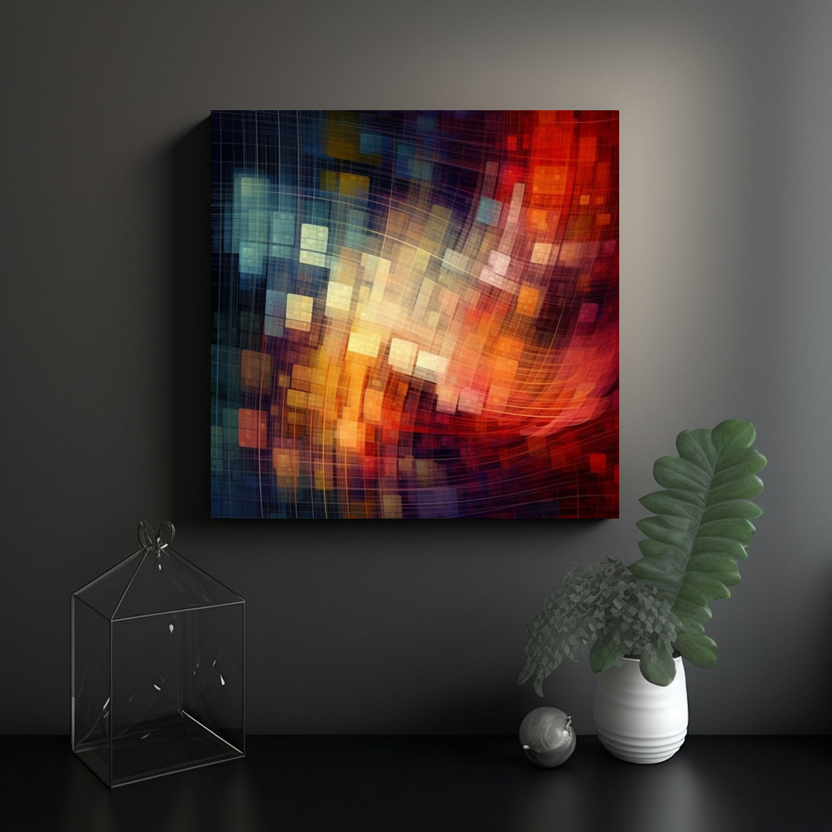 Este Cuadro Abstracto Algoritmo Fusión Luminosa quedará perfecto en tu sala de estar sobre un sofá de color neutro, resaltando su elegancia y modernidad ¡Atrévete a darle un toque único a tu hogar!