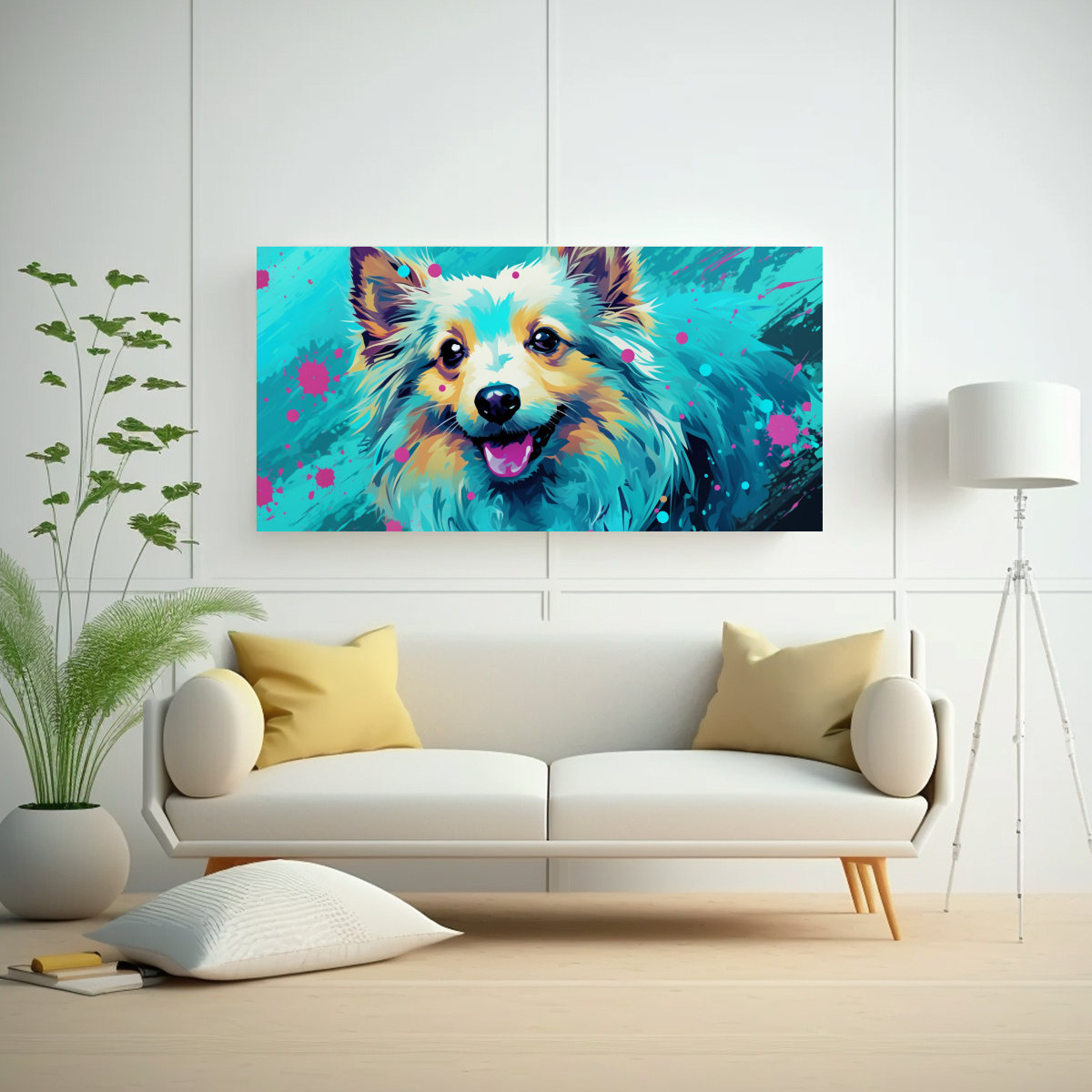 Para lograr un impacto visual sorprendente, te recomendamos colocar este cuadro en una pared blanca para que resalte su vibrante paleta de colores Combínalo con cojines en tonos turquesa, menta y coral para crear una armonía cromática en tu sala de estar ¡Atrévete a darle un toque de arte y color a tu hogar con este cuadro exclusivo!