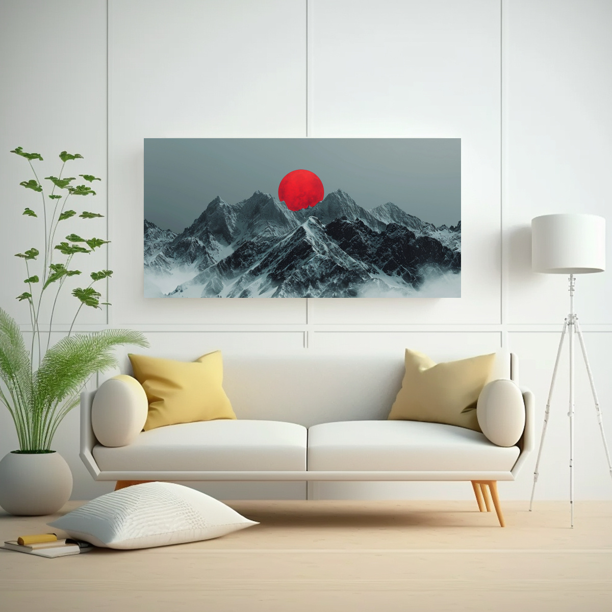 Este cuadro se vería perfecto en la sala de estar sobre un sofá de color gris claro, creando un contraste armonioso La combinación de colores y la simetría de la composición le darán un toque sofisticado a tu espacio