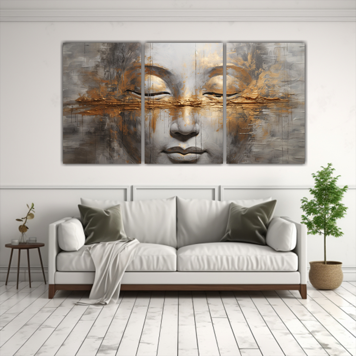 Cuadros Decorativos Buddha Cara Aceite Estilo Abstracto Plata Y Oro Decoración Pinturas