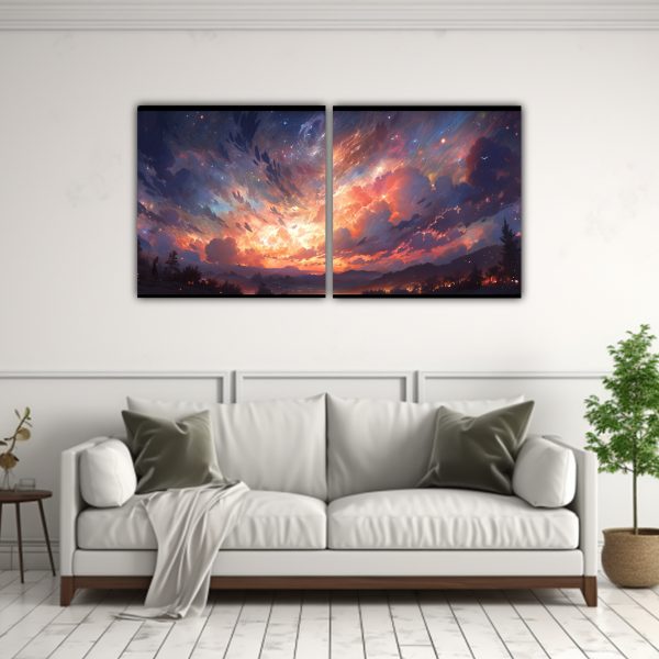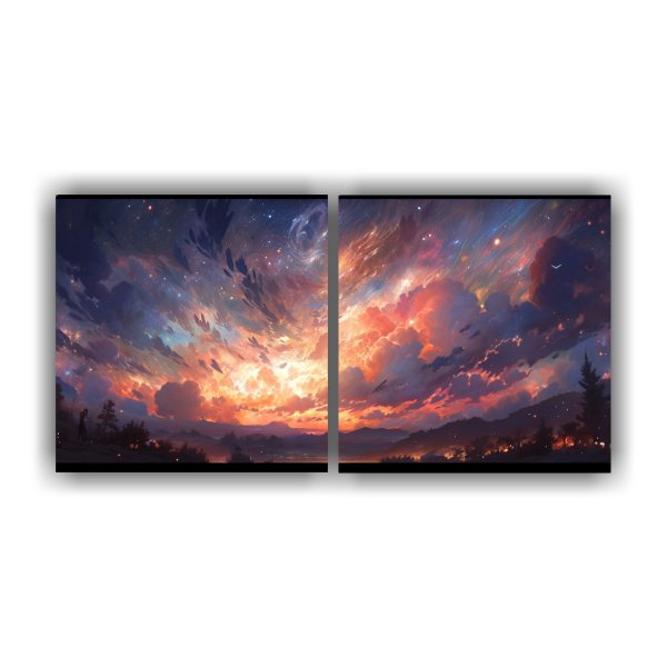 Set de 2 composiciones con un patrón intenso y detalles intrincados, reflejando un cielo nocturno con arcoíris y matices marrones Aporta un toque de elegancia a tu hogar con nuestros cuadros decorativos únicos