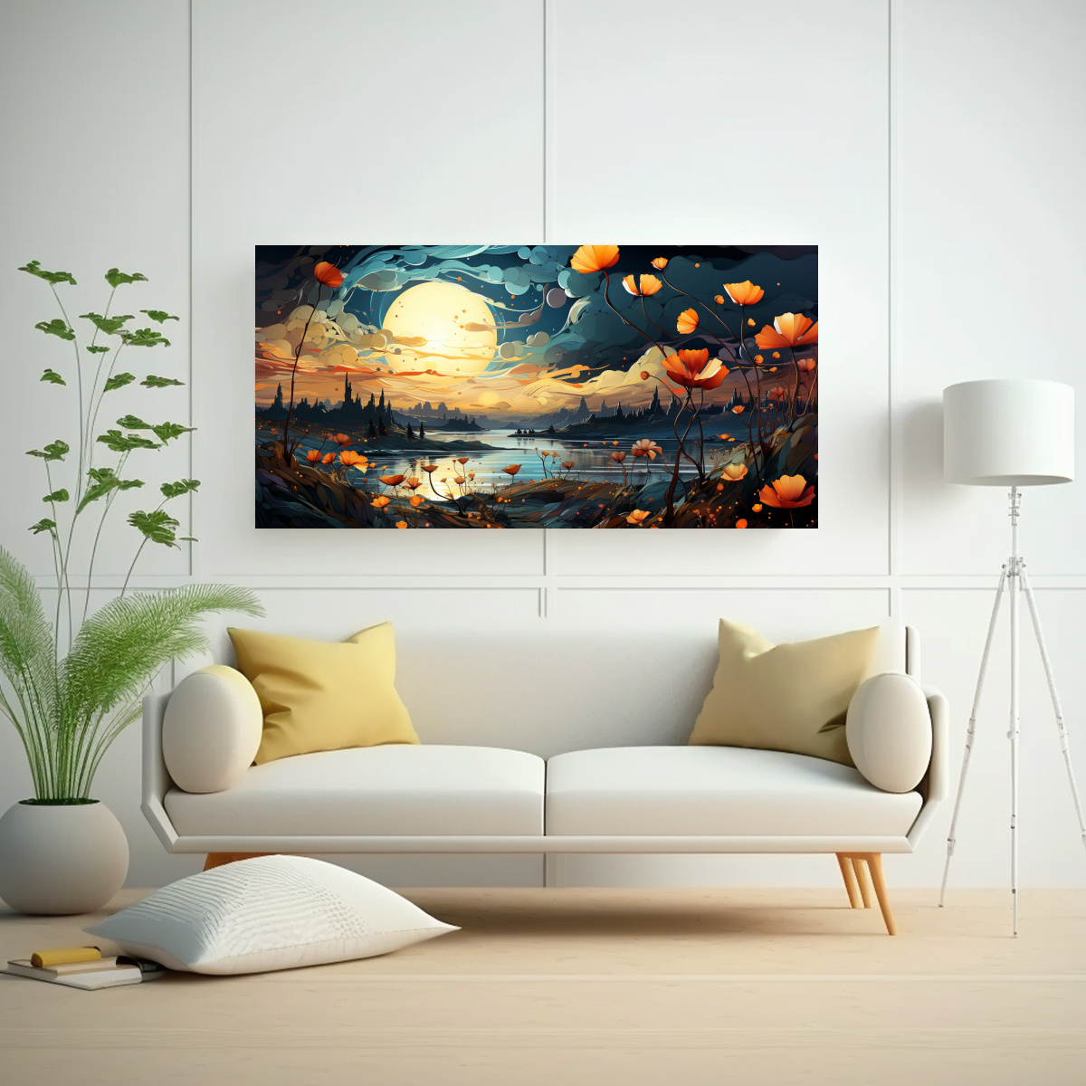 Cuadros Decorativos Con Diseño Actual De Flores Amarillas En El Cielo Con Mar