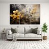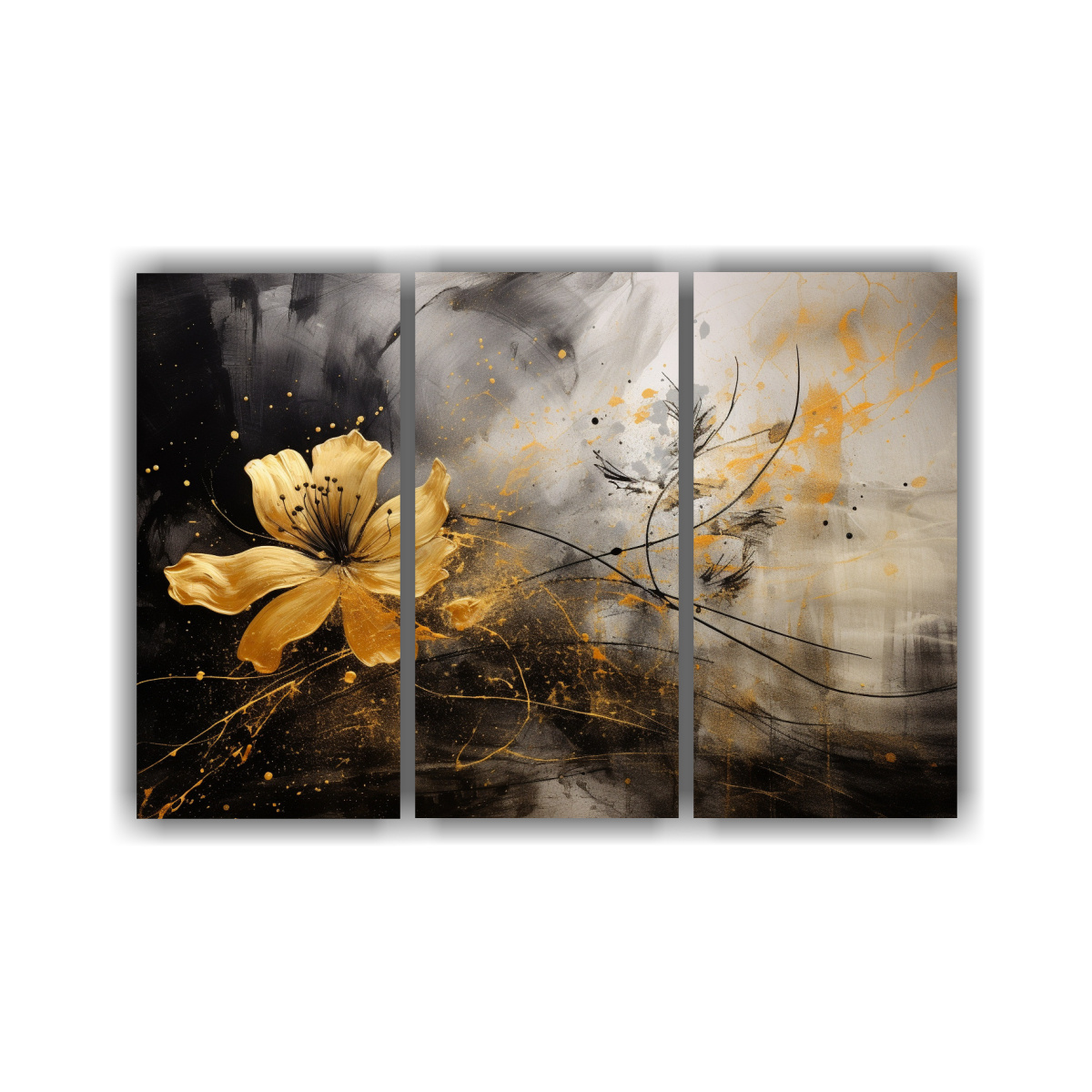 Este cuadro con flores en tonos dorados y negros sería perfecto para decorar un salón elegante o un dormitorio sofisticado Colócalo sobre una cómoda vintage o en una pared junto a una lámpara de pie para crear un ambiente refinado y cálido
