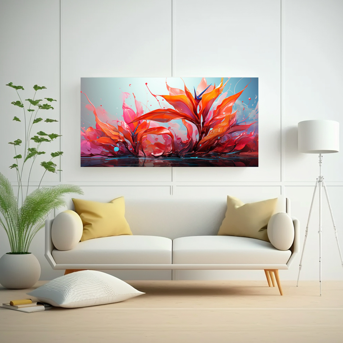 Este cuadro con hojas de heliconia en tonos rojos y estilo neo-noir es perfecto para decorar tu sala de estar o tu estudio Combínalo con muebles de colores neutros y detalles en tonos plateados para crear un ambiente moderno y vanguardista ¡Atrévete a darle un toque de color y originalidad a tus espacios!