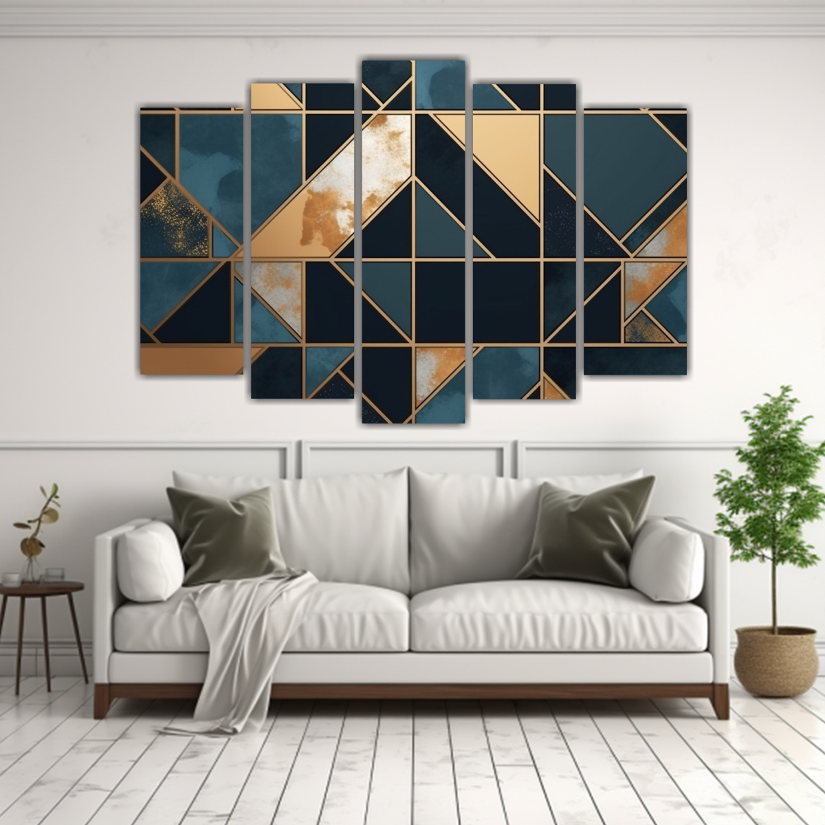 Cuadros Decorativos Con Patrón Geométrico Retro Y Color Metalizado.