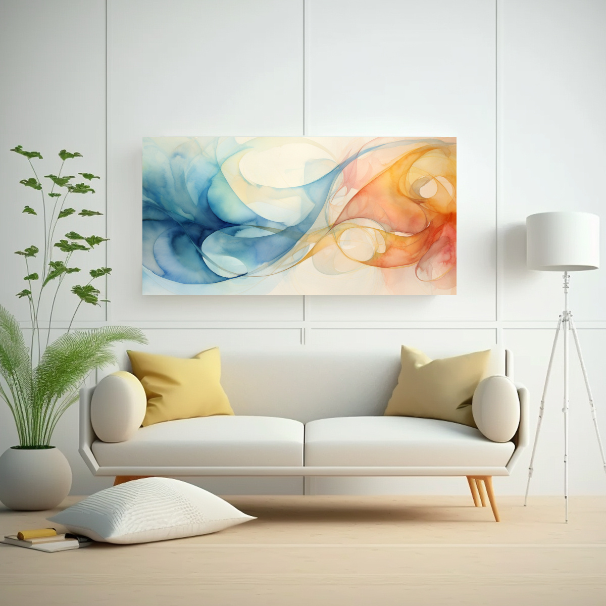 Este cuadro con patrones abstractos giratorios suaves y fluidos sería perfecto para decorar tu sala de estar Colócalo sobre un sofá beige para resaltar los tonos del cuadro y combínalo con cojines en tonos similares El resultado será una sala moderna y elegante