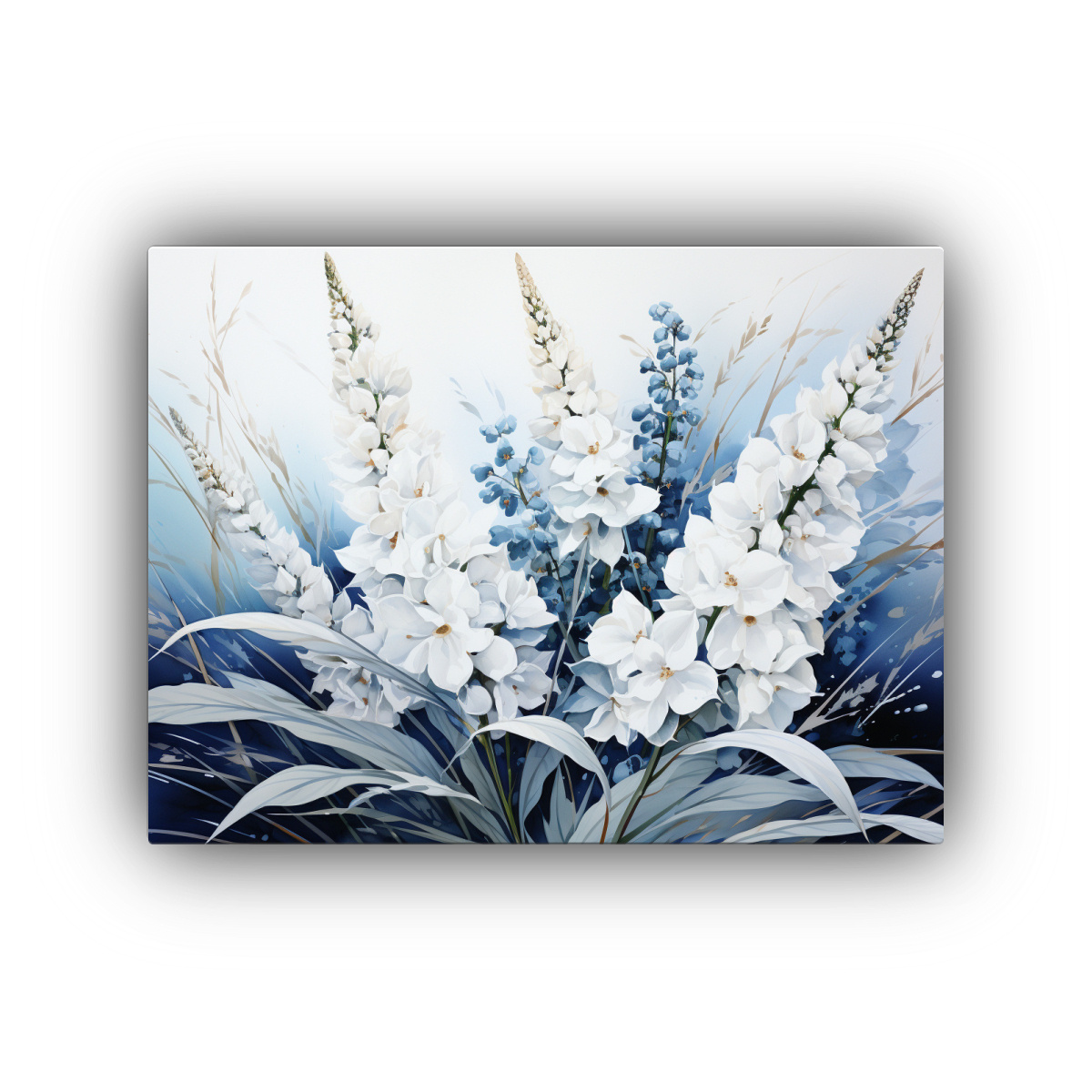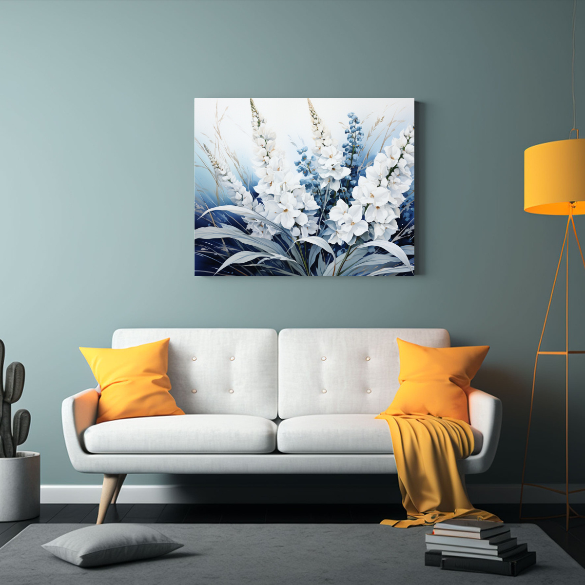 Este cuadro decorativo con tonos blancos y azules de Quinoa se vería espectacular en la sala de estar, combinando a la perfección con muebles de colores neutros para resaltar su belleza natural y atmósfera neonoir ¡Atrévete a decorar tu hogar con estilo y elegancia!