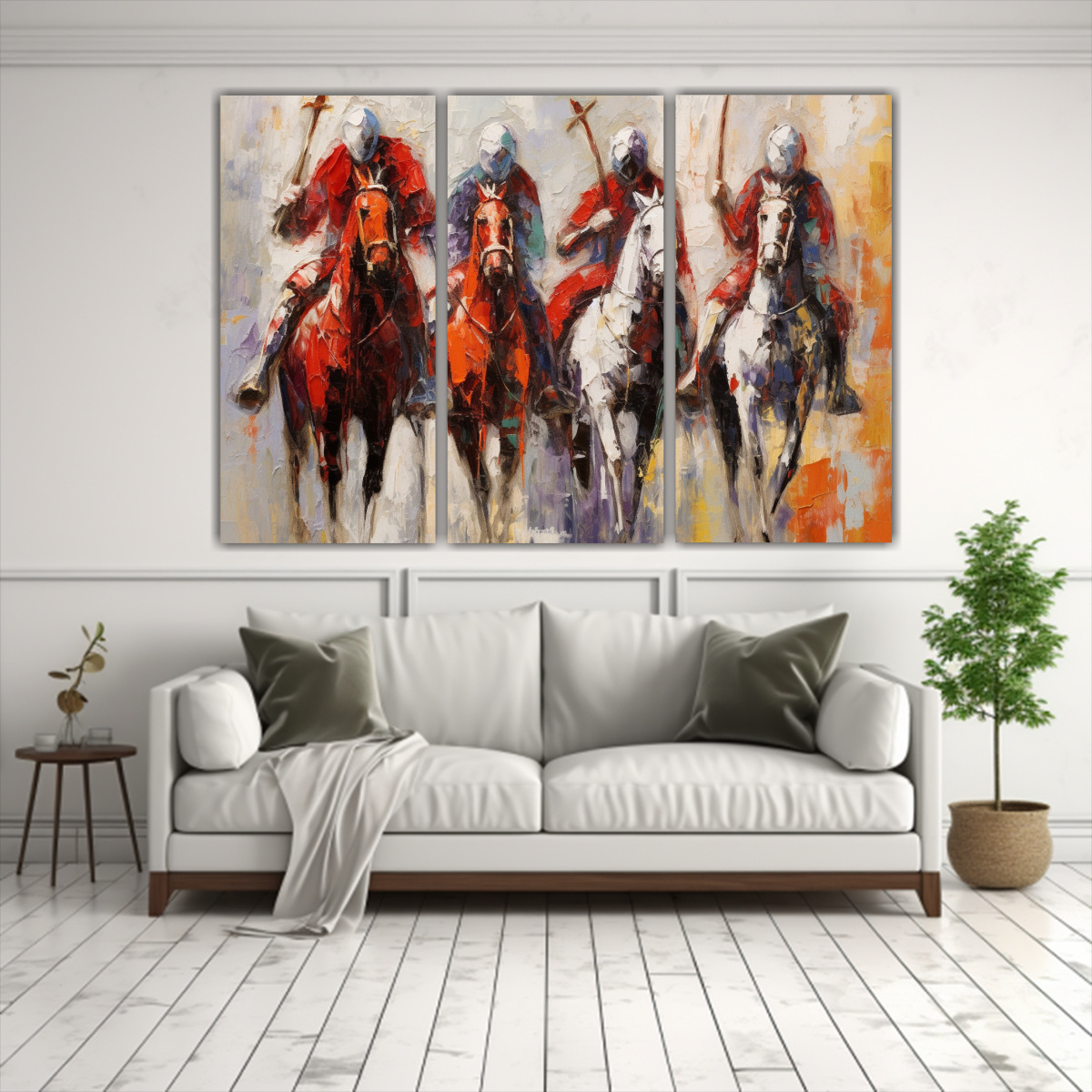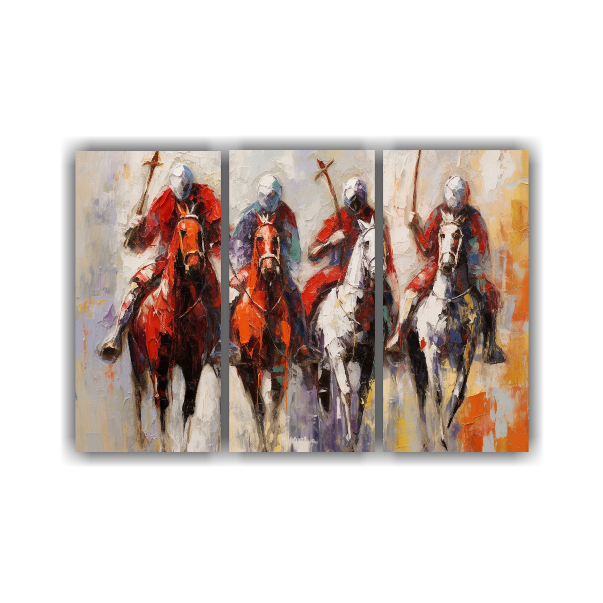 Cuadros Decorativos: Cuatro Jinetes Musulmanes En Caballos Con Lienzo Rojo.