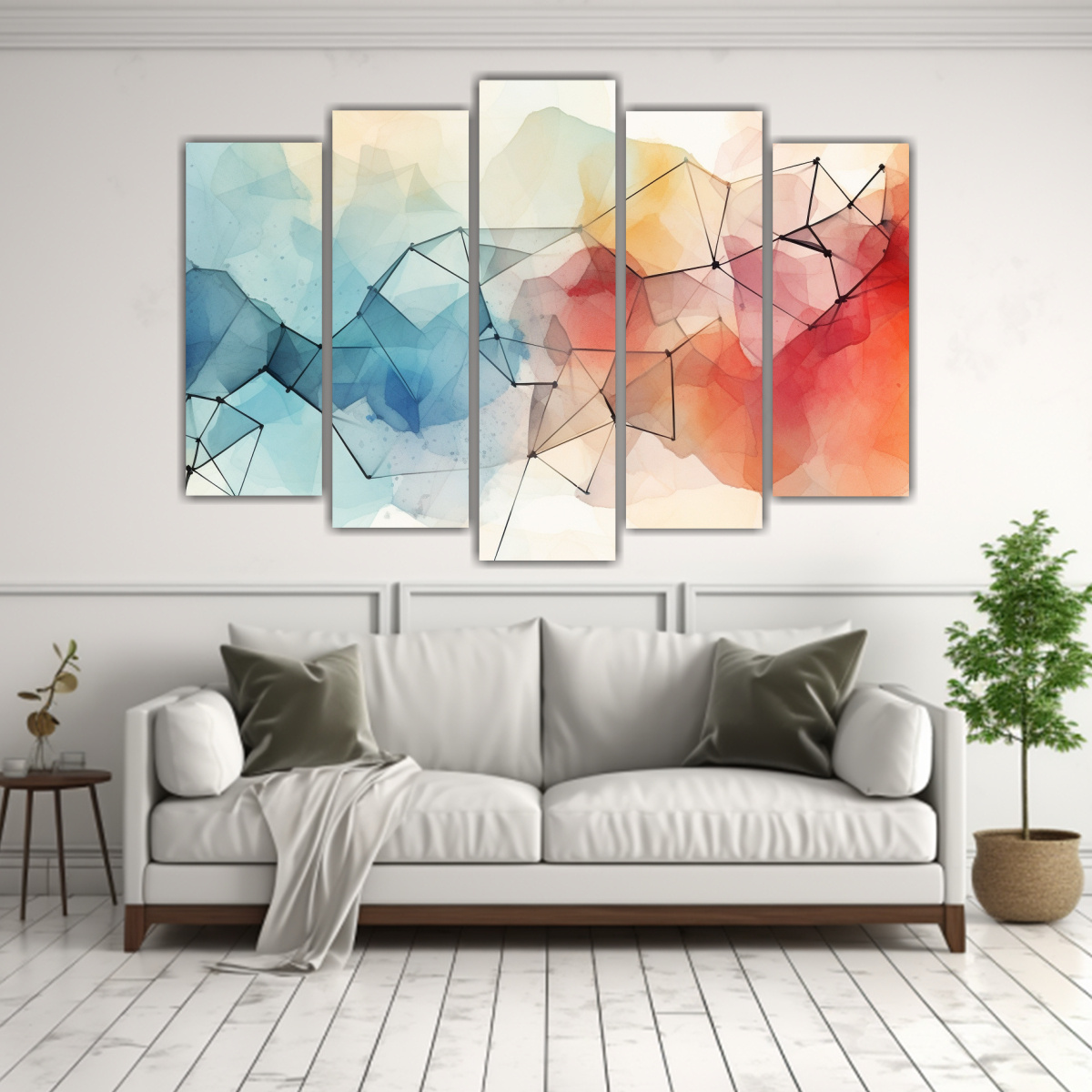Coloca este políptico en tu sala de estar sobre un sofá de tonos neutros para crear un contraste elegante y moderno Complementa con cojines en tonos turquesa y coral para lograr un ambiente armonioso y sofisticado