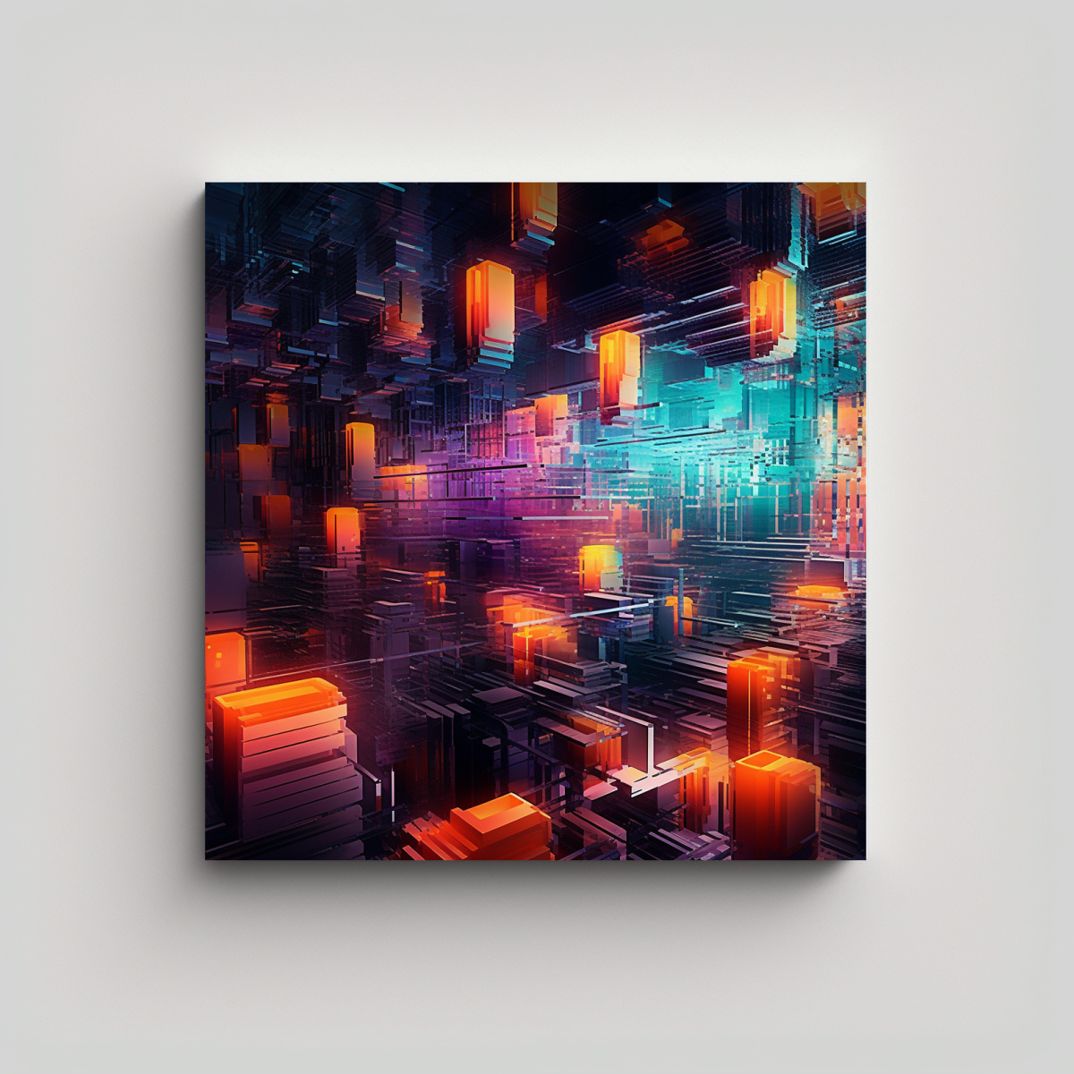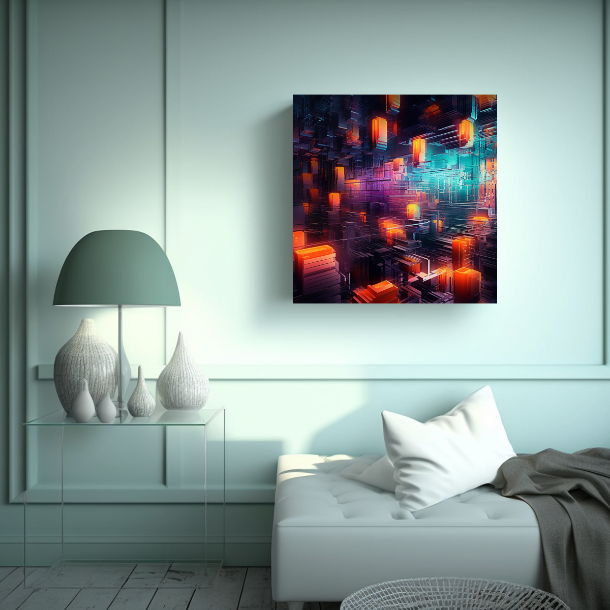 Este cuadro estilo techno se vería genial en una sala de estar moderna Puedes colocarlo sobre un sofá de color neutro para crear un contraste interesante También puedes combinarlo con otros cuadros de la misma temática para crear una composición única en tu pared