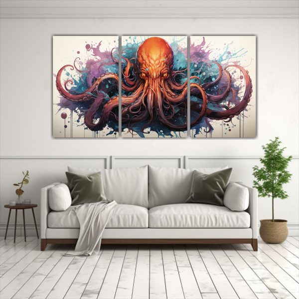 Coloca este set de cuadros en tu sala de estar para crear un ambiente misterioso y vanguardista Combínalos con muebles en tonos neutros para resaltar los colores vibrantes de Cthulhu en un estilo neo pop art ¡Sorprende a tus invitados con una decoración única y sofisticada!