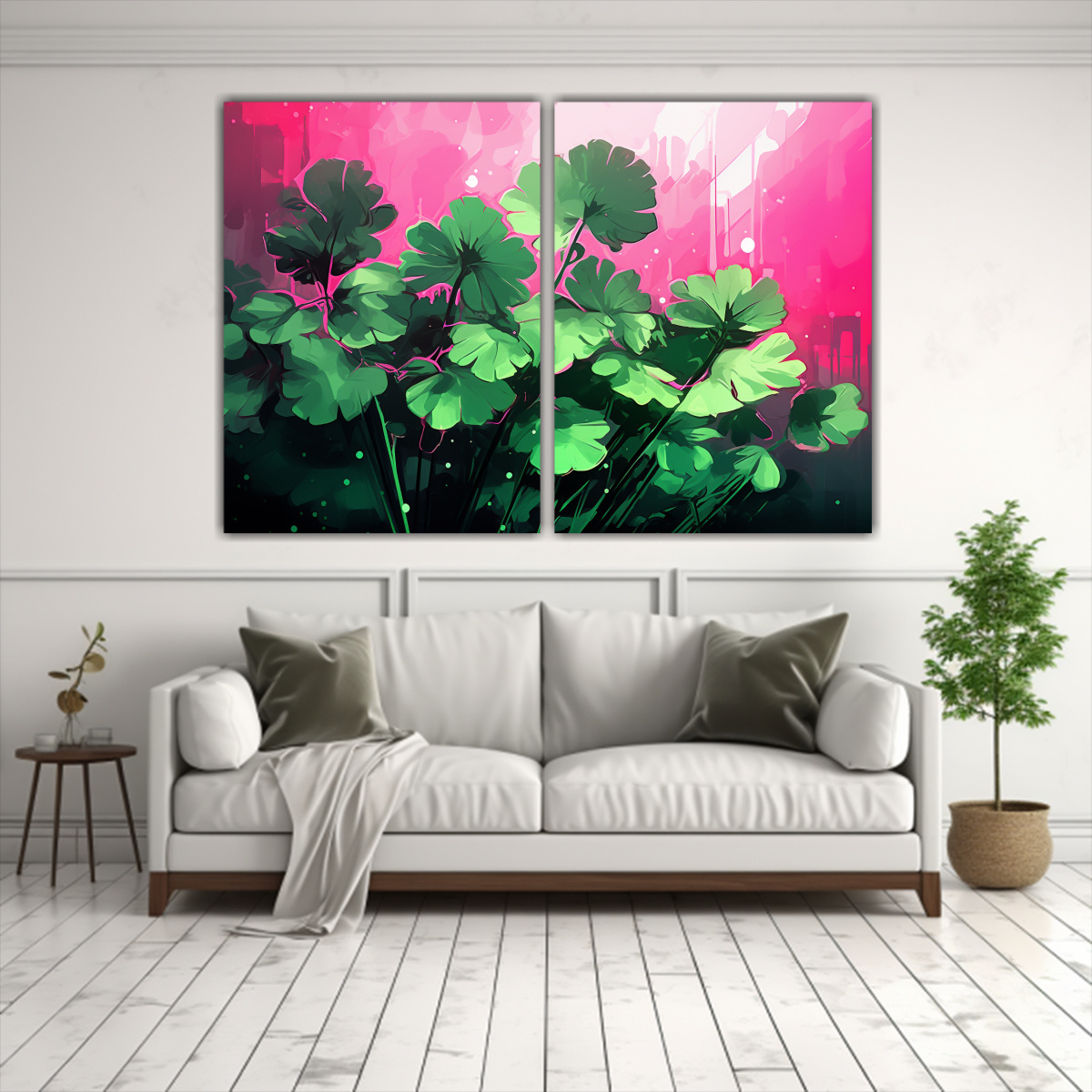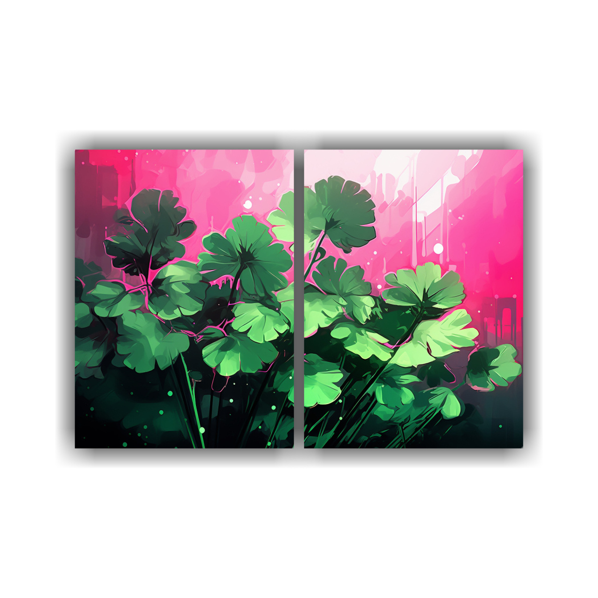 Este set de 2 telas en bastidor con colores en tonos verde y rosa es ideal para decorar tu sala de estar o comedor Colócalos juntos en una pared blanca para resaltar su belleza y crear un ambiente fresco y acogedor