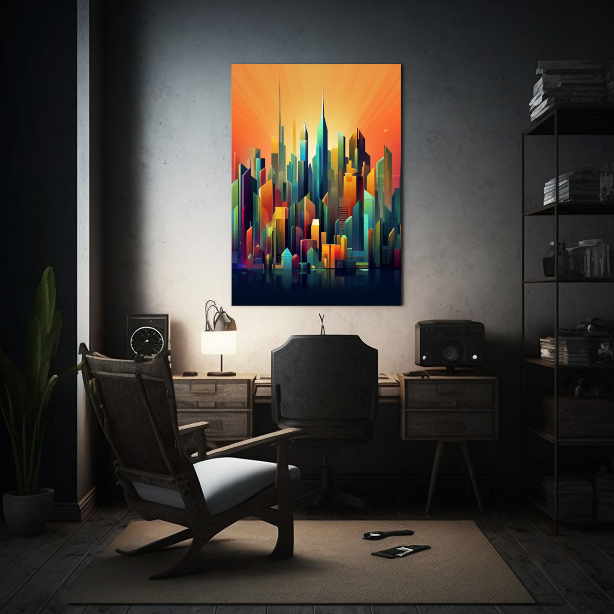 Cuadros Decorativos De Ciudad Con Paisaje Urbano Geométrico Simplificado De Diferentes Edificios