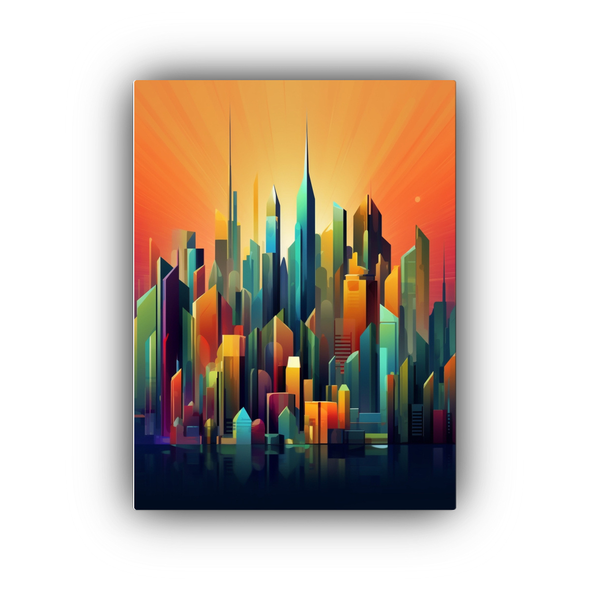 DecoCuadros ofrece cuadros decorativos impresos en tela de alta calidad con bastidores de madera Nuestro cuadro ‘Cuadros decorativos de ciudad con paisaje urbano geométrico simplificado de diferentes edificios’ presenta una combinación de colores Coral, Azul Marino grisaceo, Gris, Carmesí, Amarillo Claro, Beige y Menta Destaca por su diseño exclusivo y su excelente relación calidad-precio