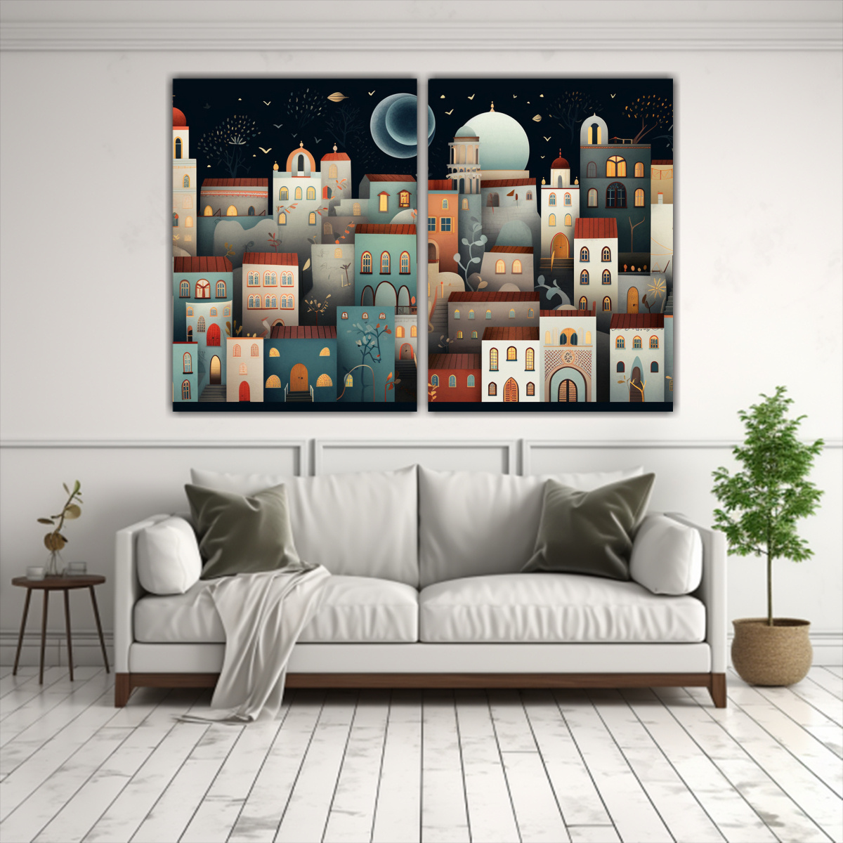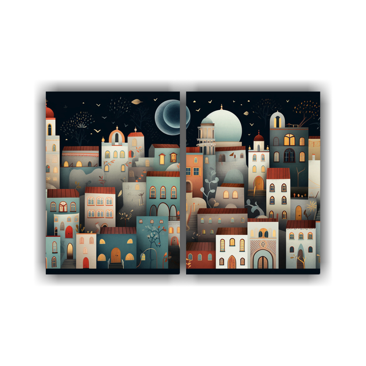 Cuadros Decorativos De época Con Escenas Animadas En Dos Lienzos Horizontales